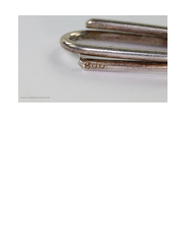 Der Sprungring ist aus 1,5 mm starken Silberdraht gebogen. Darauf die Silberpunze „800“. Siehe Bild 16 bis 18.