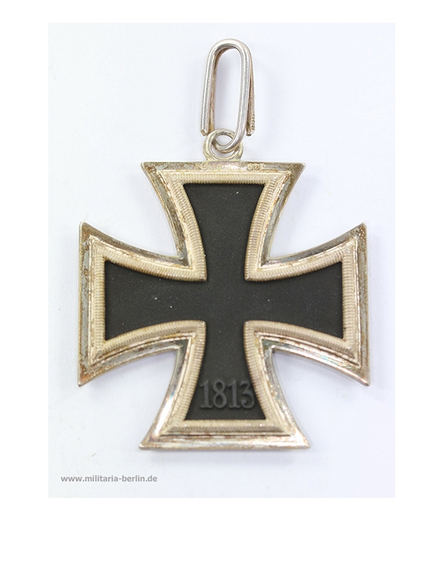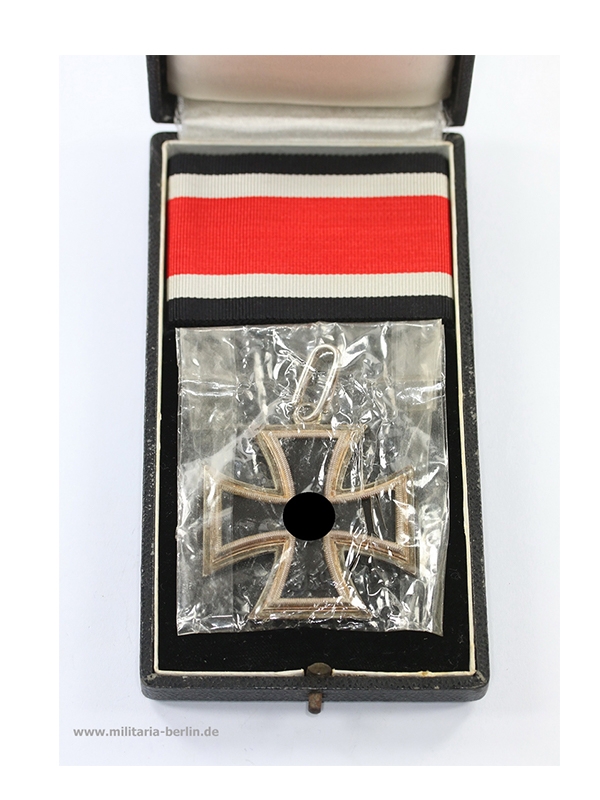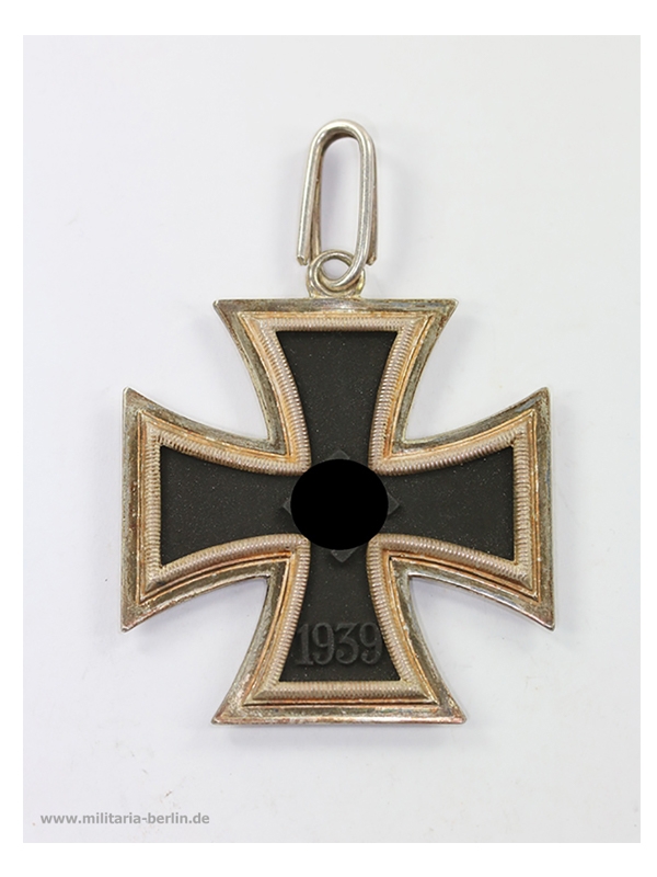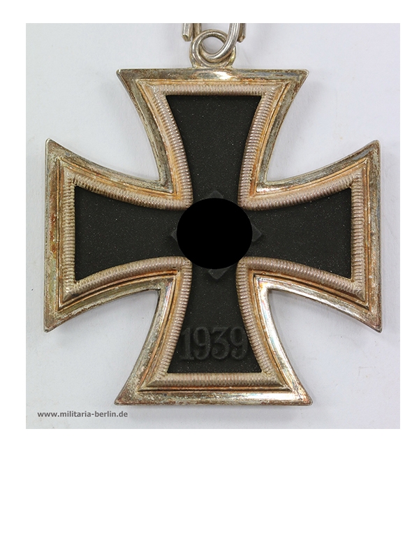 Die Gestaltung des Ritterkreuzes orientierte sich am bereits 1813 gestifteten Eisernen Kreuz. Der ursprüngliche Entwurf stammte von den bekannten Architekten Karl Friedrich Schinkel (https://de.wikipedia.org/wiki/Karl_Friedrich_Schinkel). In der Form ein Tatzenkreuz. Der schwarze Eisen Kern ist umgeben von einer Silber Zarge mit gerippten Zierrand und polierten Kanten. Daran oben eine Öse, durch diese Öse wurde der eigentliche Tragering (Sprungring) geführt. Vorderseitig in der Mitte ein Hakenkreuz auf den 6-Uhr Arm das Stiftungsjahr 1939. Rückseitig, wieder der schwarze Kern, auf den 6-Uhr Arm die Jahreszahl 1813, zur Erinnerung an die erste Stiftung des Eisernen Kreuzes 1813 (Befreiungskrieg). Getragen wurde das Ritterkreuz als Halsorden am schwarz-weiß-roten Band.