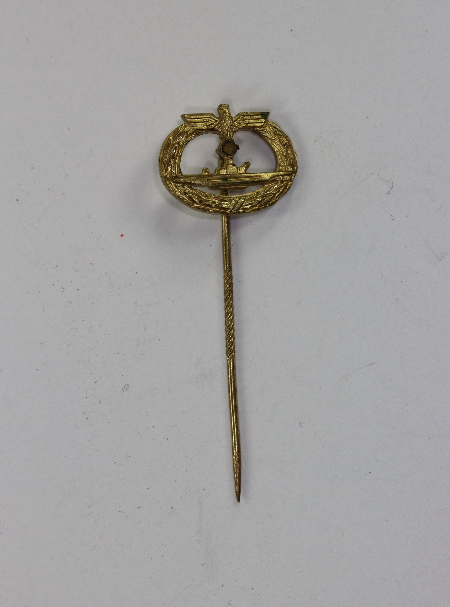 16 MM Miniatur U-Bootskriegsabzeichen, Buntmetall, entnazifiziert