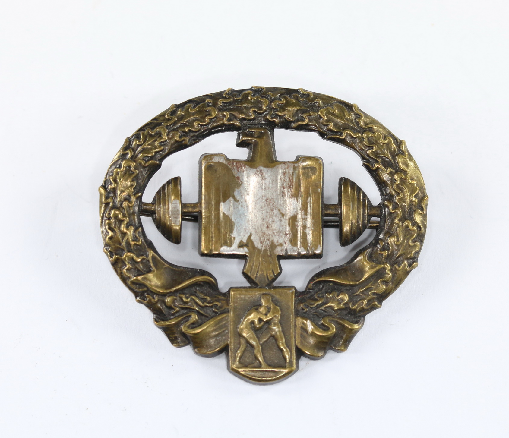 Deutsches Schwerathleten Sportabzeichen 2. Modell in Bronze, entnazifiziert (!)