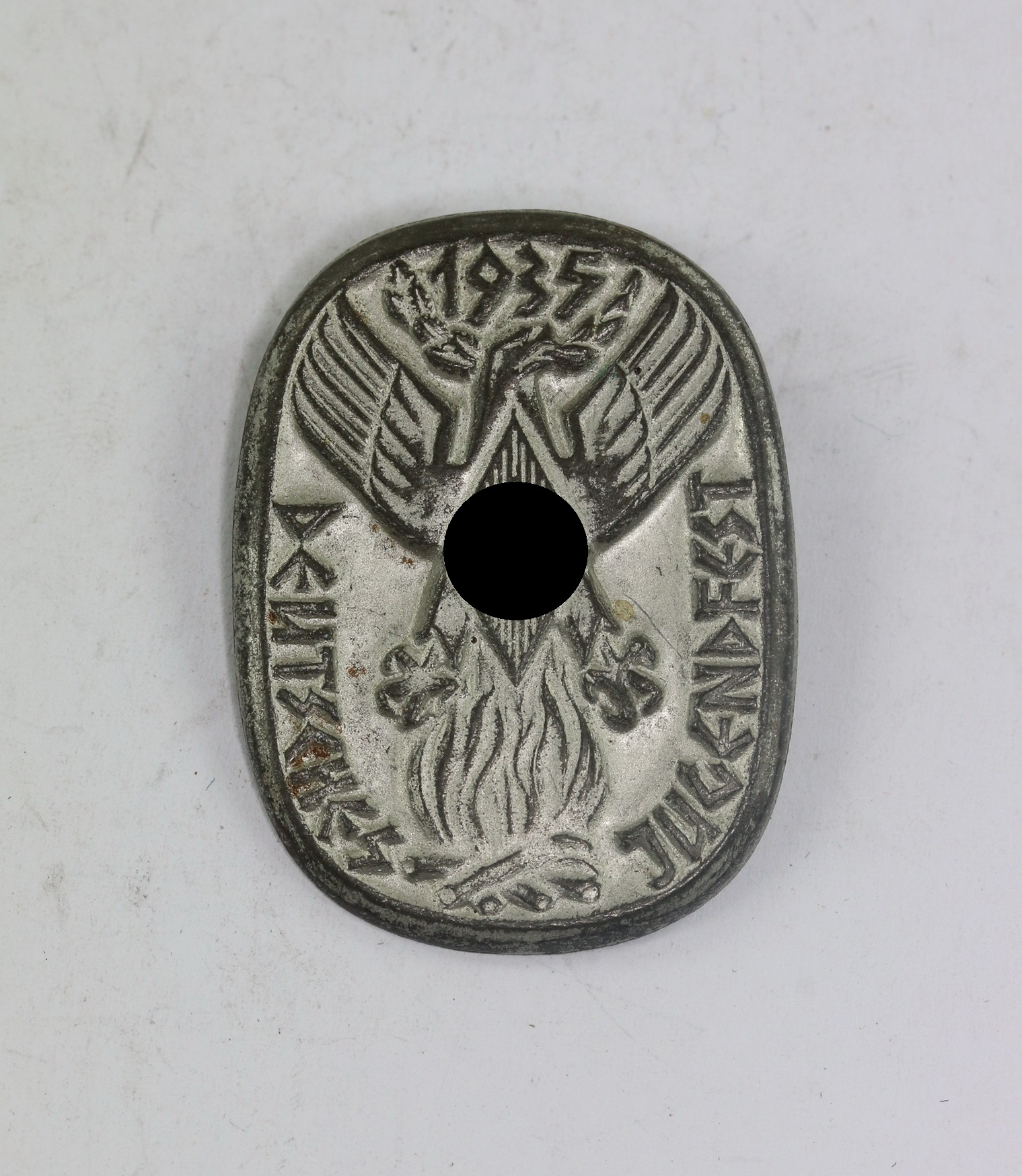 Eisen Blech, versilbert. Sehr guter, nur leicht getragener Zustand.