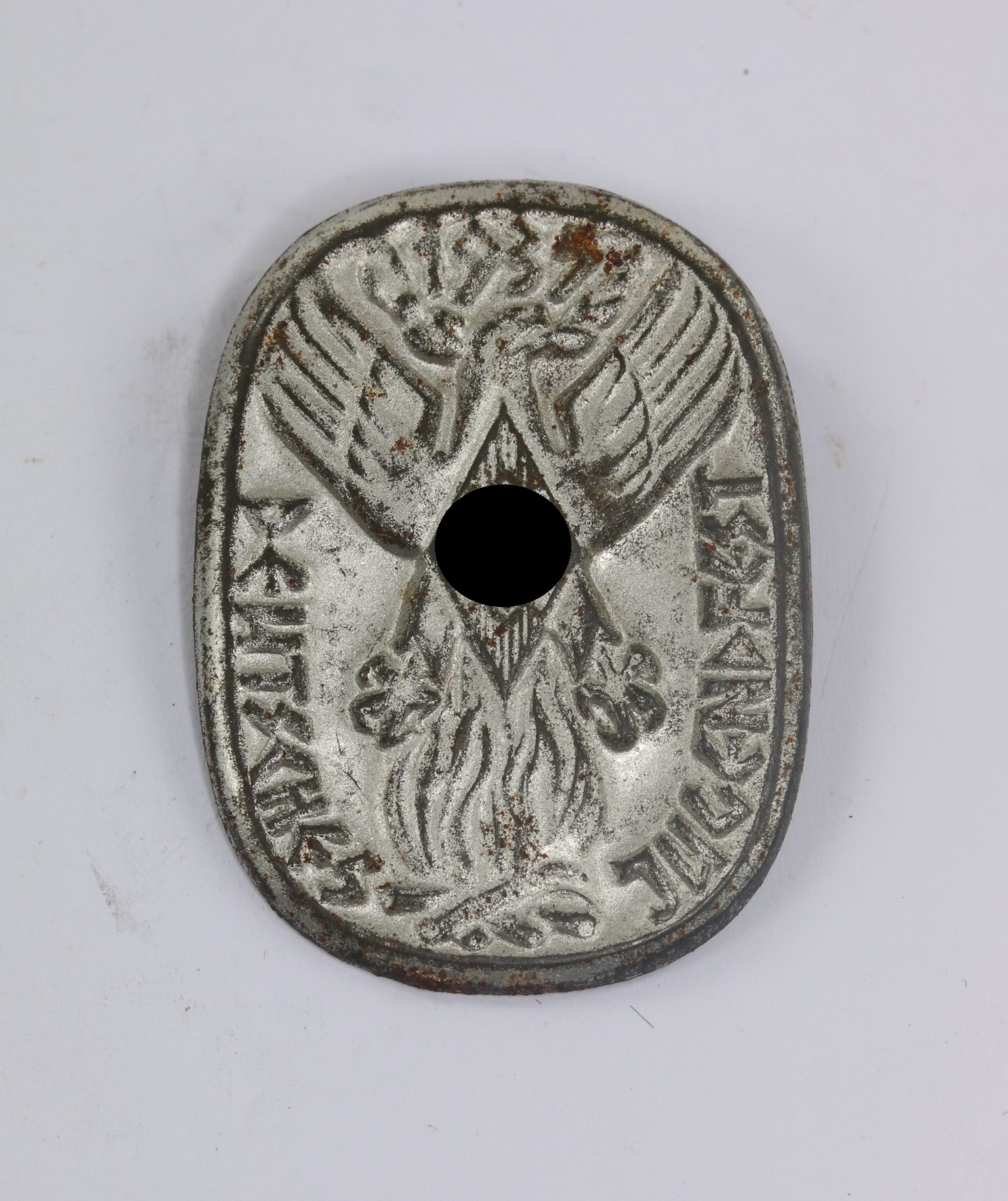 Eisen Blech, versilbert. Sehr guter, leicht getragener Zustand.