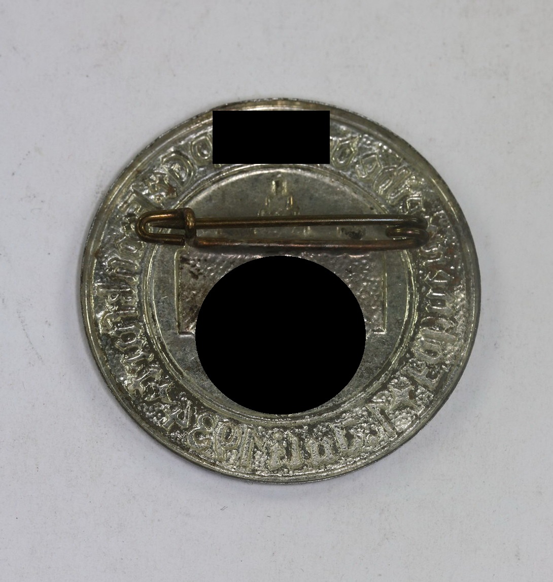 Das Abzeichen aus versilberten Eisen Blech. Sehr guter, nur leicht getragener Zustand. Durchmesser 35 mm.