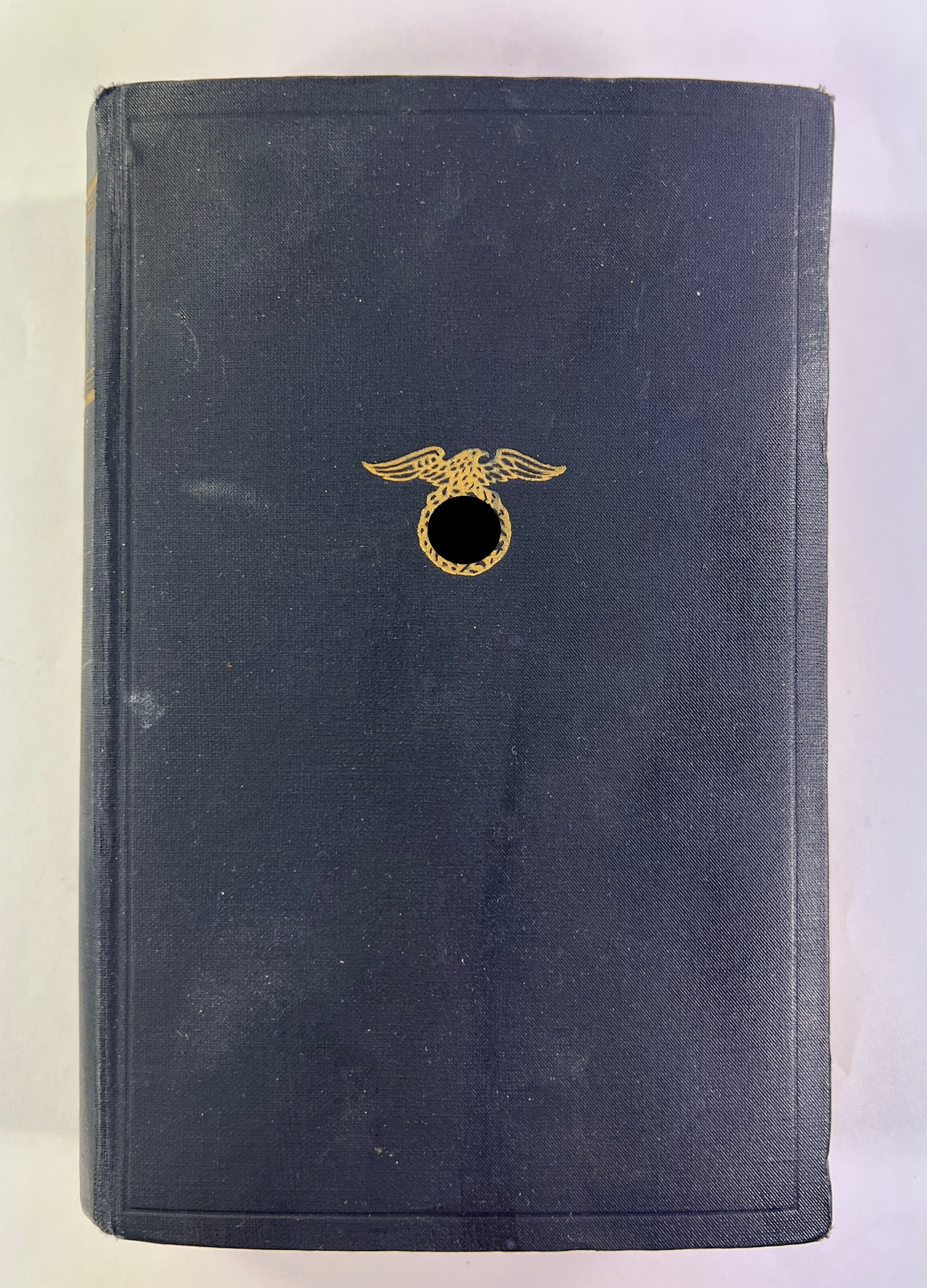Sehr guter, leicht gebbrauchter Zustand. Vollständig 781 Seiten mit Führerbild und Seidenpapier. Zentralverlag der NSDAP. Franz Eher Nachf., GmbH., München, 85. – 94.. Auflage. Original Ganzleineneinband mit goldgeprägten Rückentitel und Hoheitsadler mit Hakenkreuz.