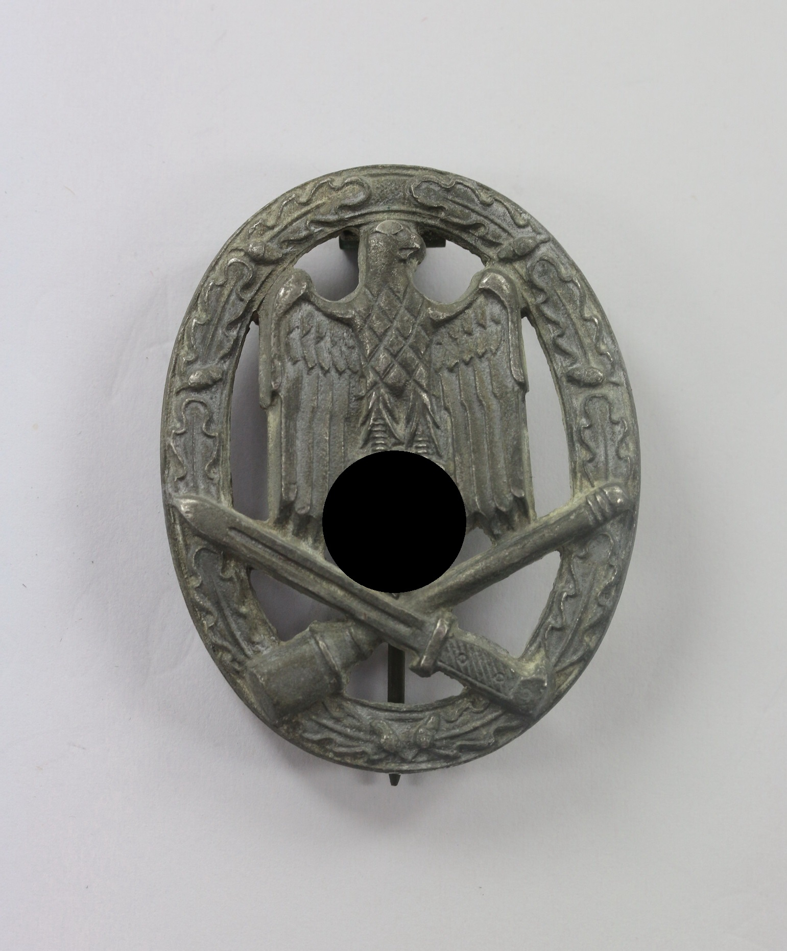 Zink, sehr guter, nur minimal getragener Zustand. Mit fast vollständiger Versilberung und leichter Patina. Mit Hersteller „L/53“ für die Firma Hymmen & Co., Lüdenscheid. Siehe GCA-Datenbank.