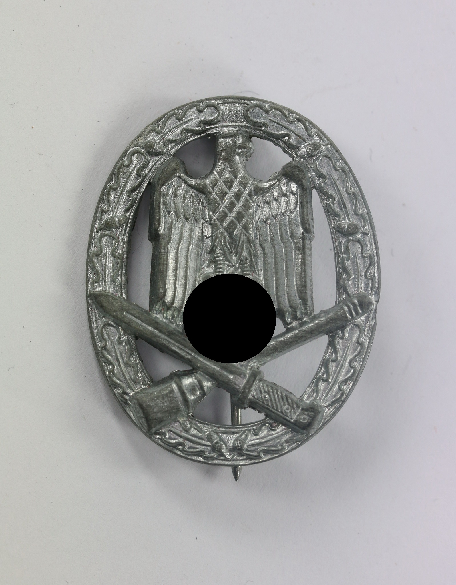Zink, excellenter, ungetragener Zustand. Mit vollständiger Versilberung. Mit Hersteller „L/53“ für die Firma Hymmen & Co., Lüdenscheid. Siehe GCA-Datenbank.