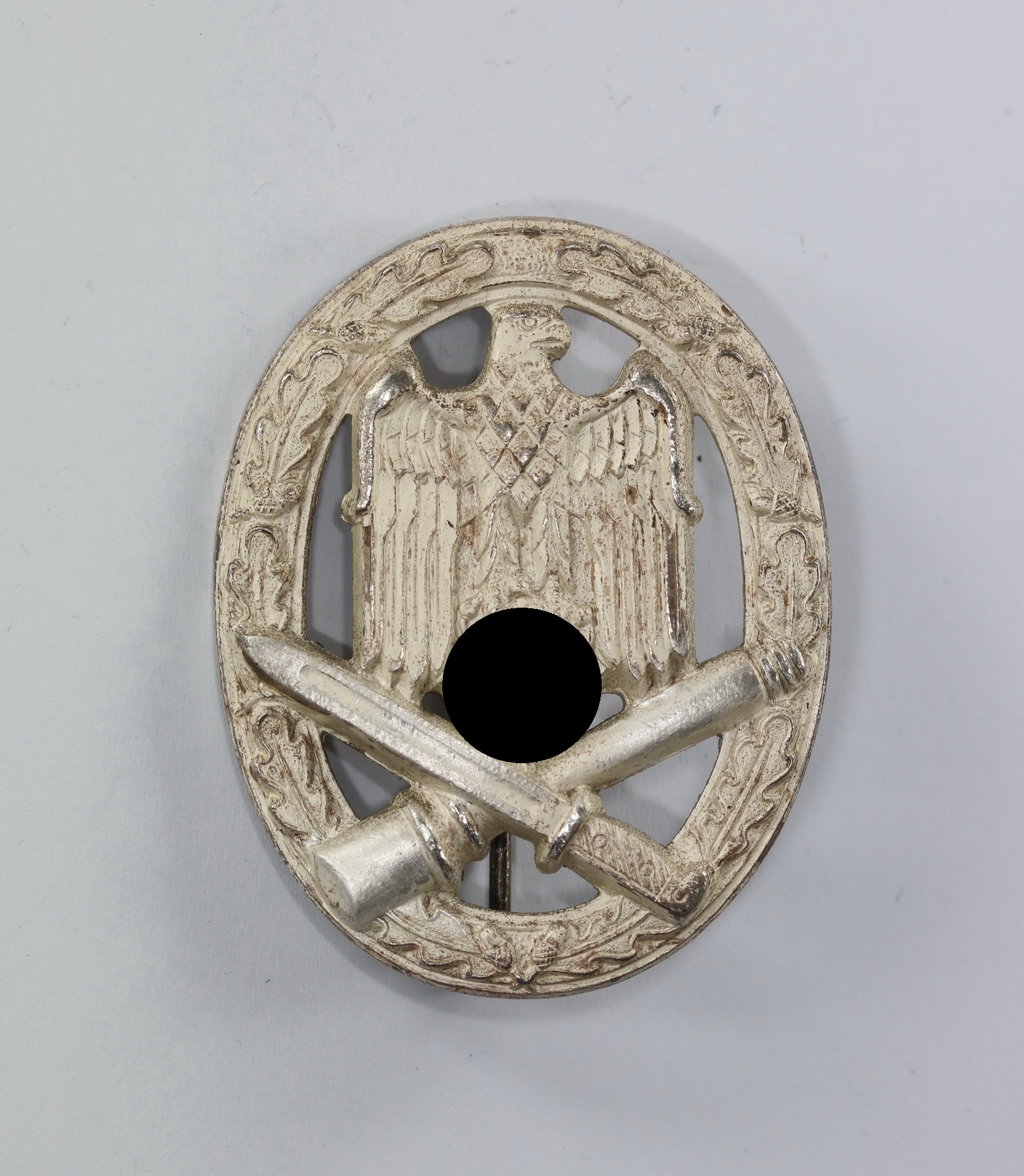 Zink, excellenter, ungetragener Zustand. Mit vollständiger, frostiger Versilberung. Hakenkreuz und Kanten poliert. Mit Hersteller „W“ für die Firma Karl Wurster, Markneukirchen.