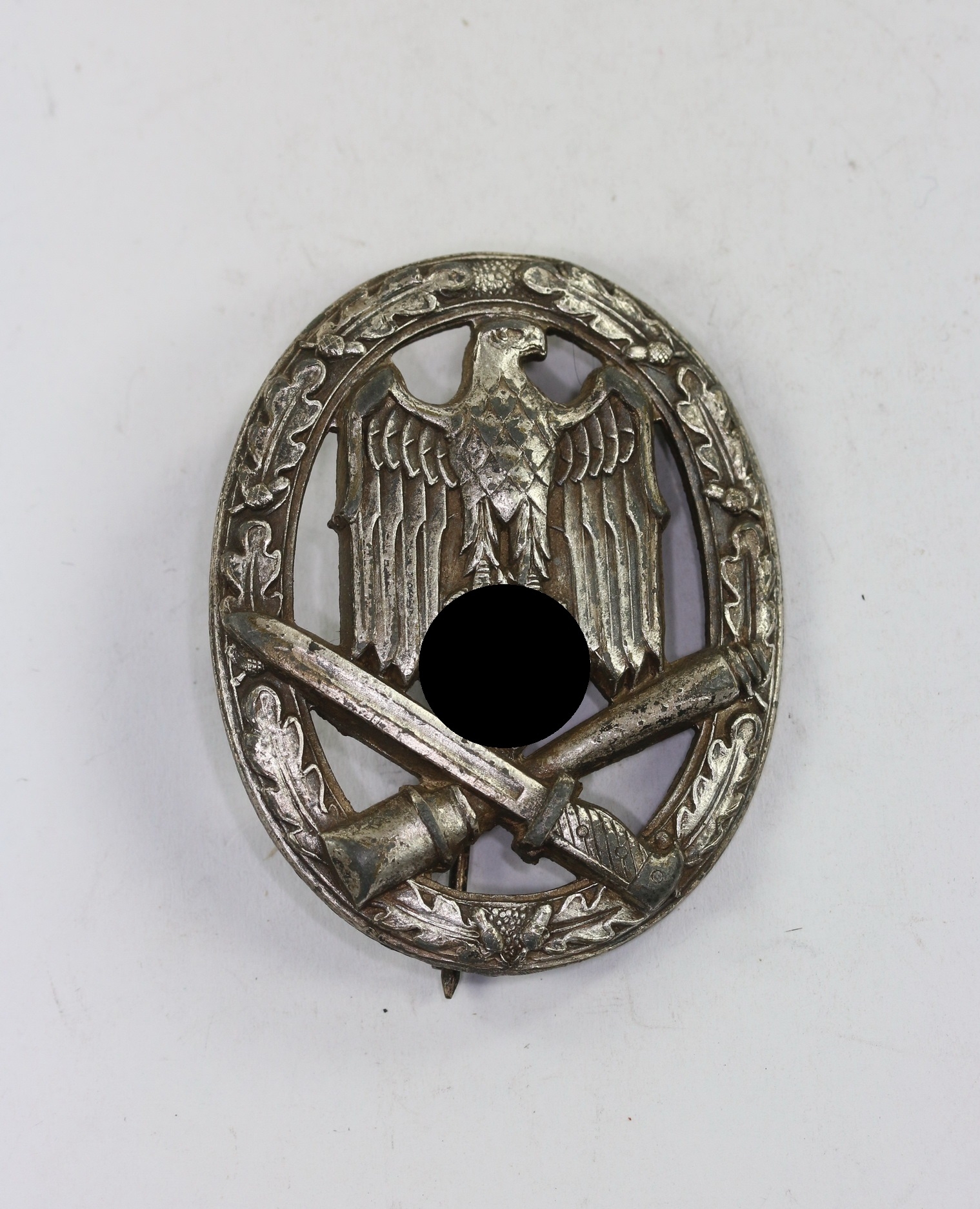 Zink, sehr guter, leicht getragener Zustand. Ohne Hersteller, aber eine bekannte Variante der Firma Rudolf Karneth, Gablonz. Siehe GCA-Datenbank.