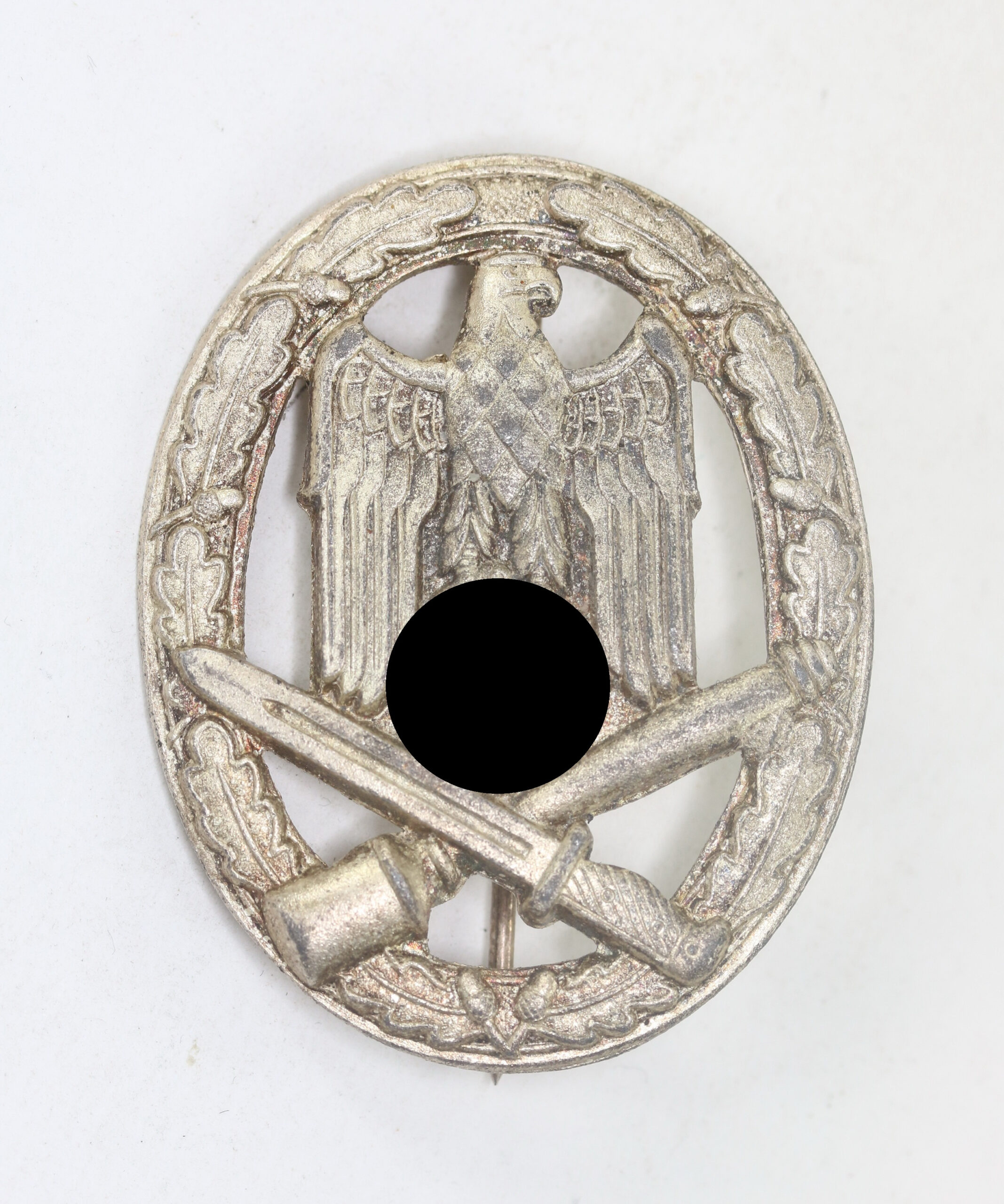 Zink, excellenter, ungetragener Zustand. Mit vollständiger Versilberung und leichten Ansätzen von Patina. Ohne Hersteller, aber eine bekannte Variante der Firma Paul, Meybauer, Berlin. Siehe GCA-Datenbank.