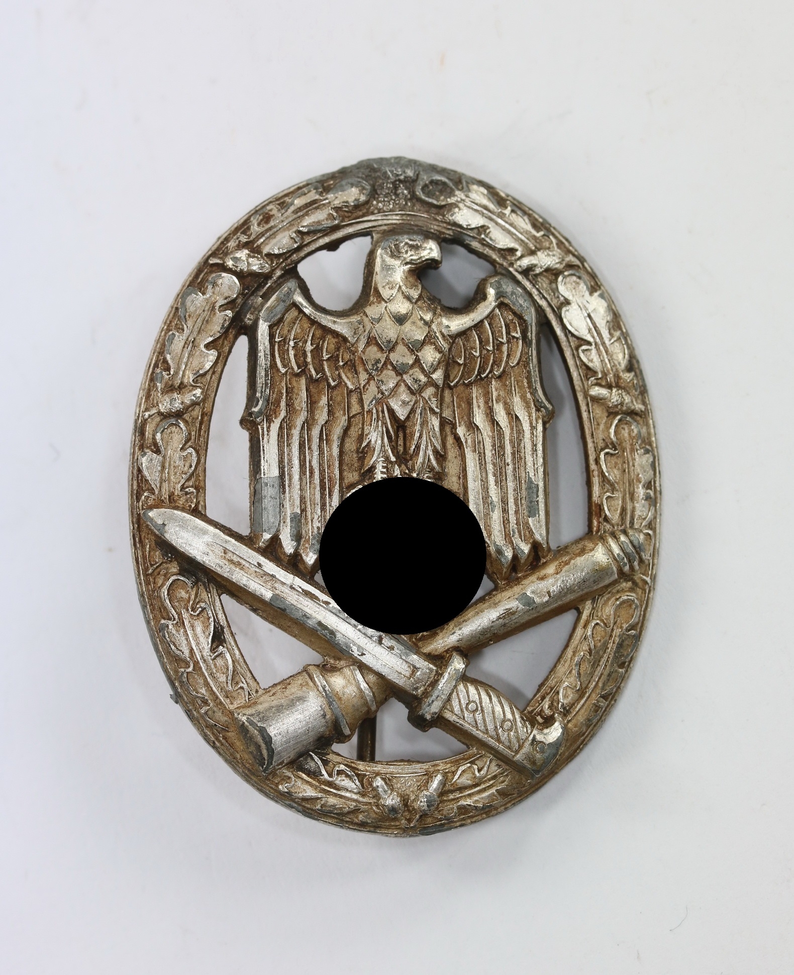 Zink, der originale Nadelbock zeitgenössisch nachgelötet, sonst sehr guter, getragener Zustand. Ohne Hersteller, aber eine bekannte Variante der Firma Rudolf Karneth, Gablonz. Siehe GCA-Datenbank