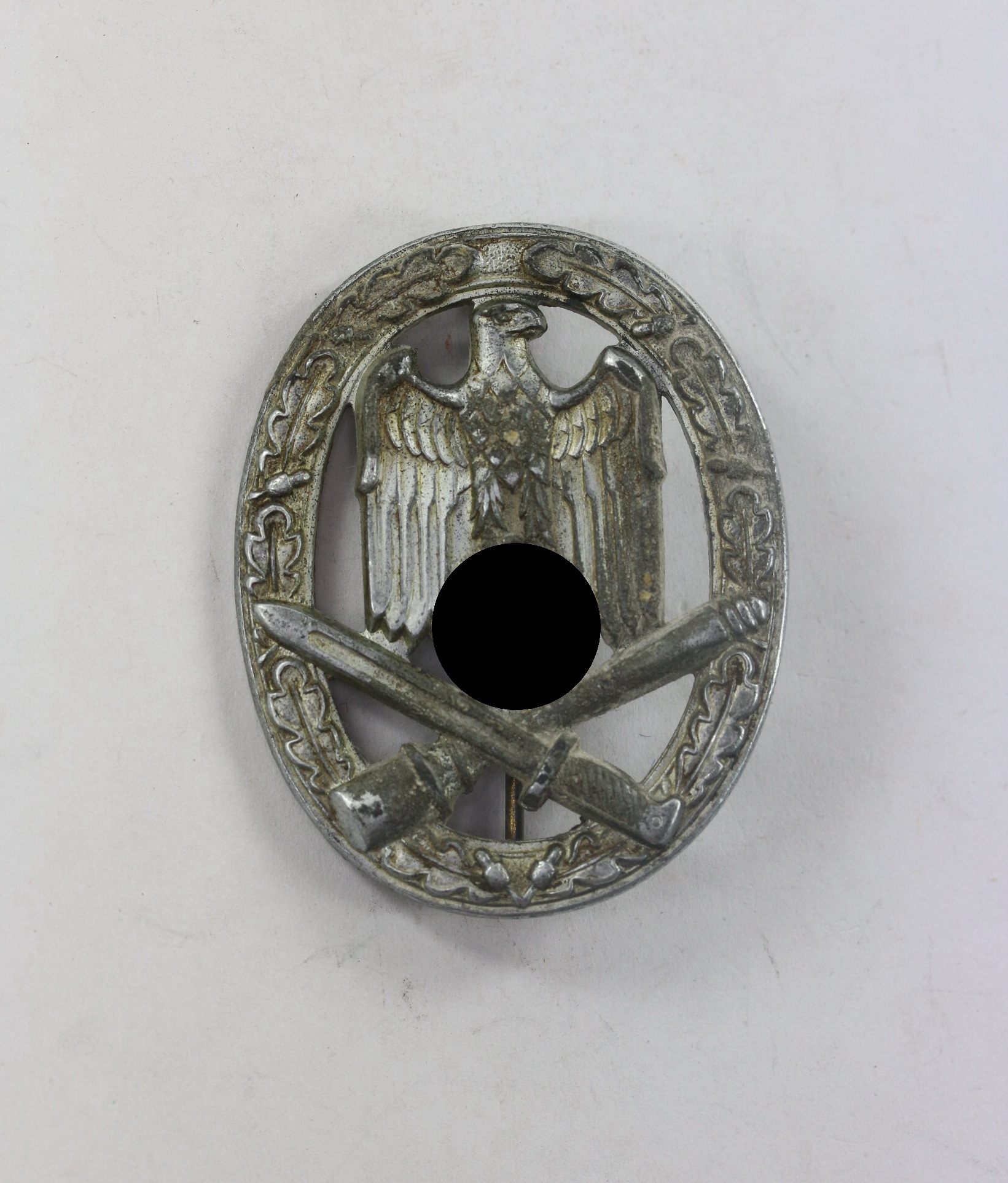 Zink, sehr guter, leicht getragener Zustand. Mit noch schöner Versilberung und Patina. Ohne Hersteller, aber eine bekannte Variante der Firma Wilhelm Deumer, Lüdenscheid. Siehe GCA-Datenbank.