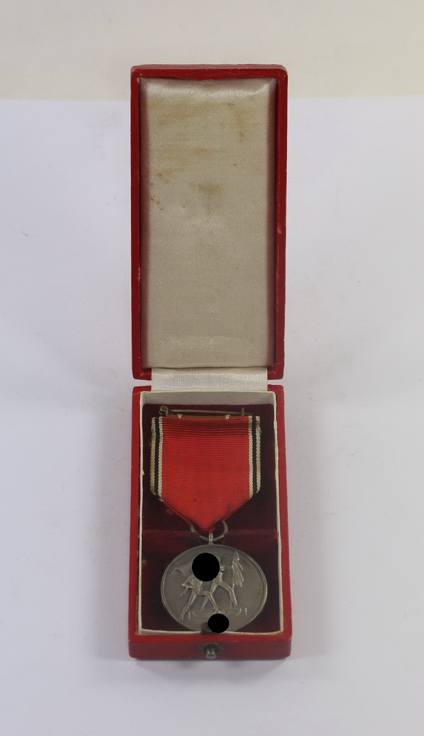 Im zugehörigen roten Etui. Das Etui in einem sehr guten, nur minimal gebrauchten Zustand. Auf den Deckel mit in Gold eingeprägten Hoheitsadler mit Hakenkreuz.