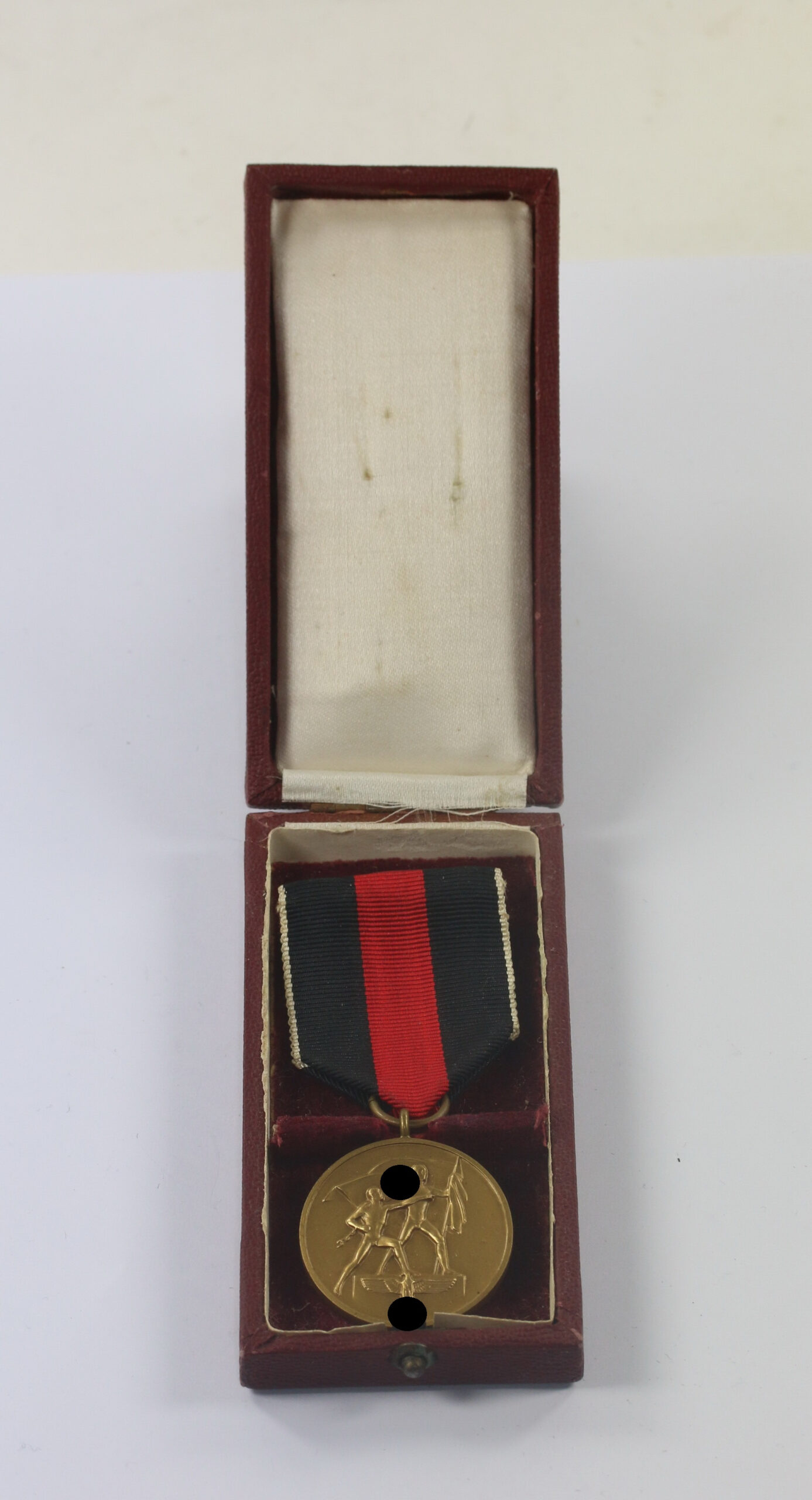 Buntmetall, sehr guter, nur minimal getragener Zustand. Ohne Hersteller, aber eine bekannte Variante. Am Band mit Tragenadel.