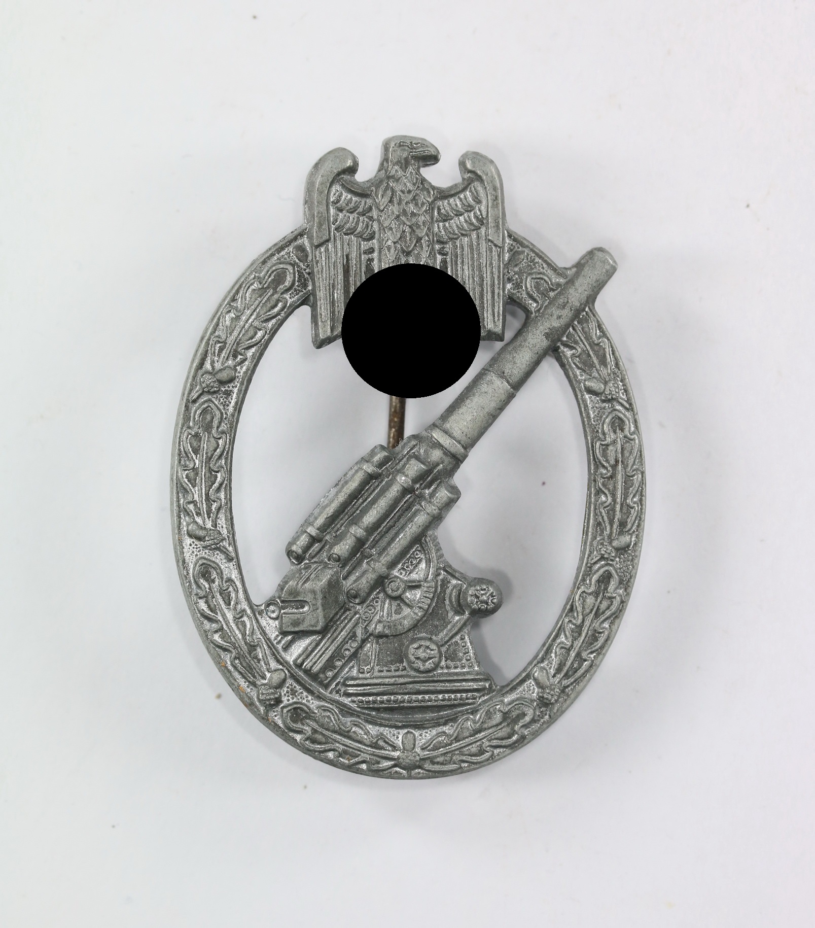 Zink, sehr guter, nur minimal getragener Zustand. Mit vollständiger typischer Tönung. Ohne Hersteller, aber eine bekannte Variante der Firma Alois Rettenmaier, Schwäbisch Gmünd (L/59). Auch bekannt als „Flatback“ . Siehe GCA-Datenbank.