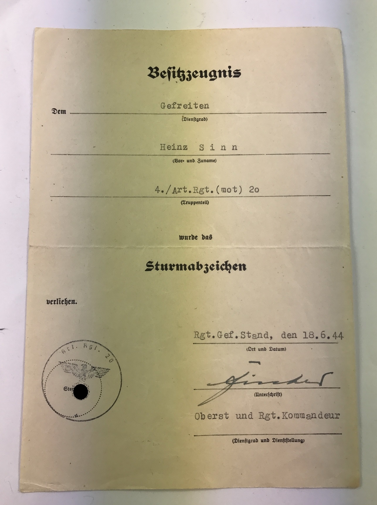 Besitzzeugnis Sturmabzeichen (Allgemein)