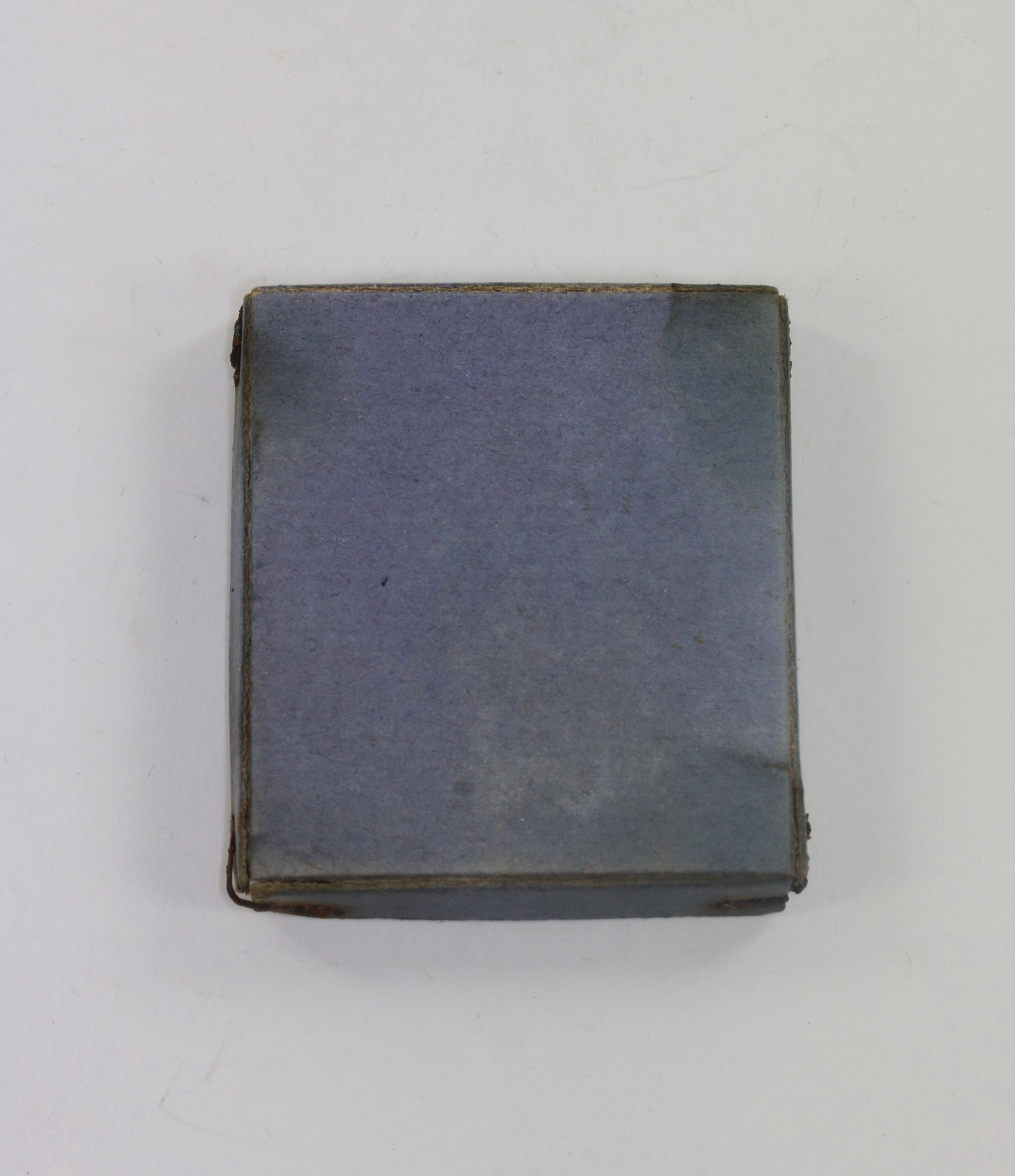 Sehr guter, leicht gebrauchter Zustand. Die Klammern an den Ecken teilweise durch gerostet. In der Schachtel noch das origjnale Packpapier. Maße ca. 50 x. 45 mm.