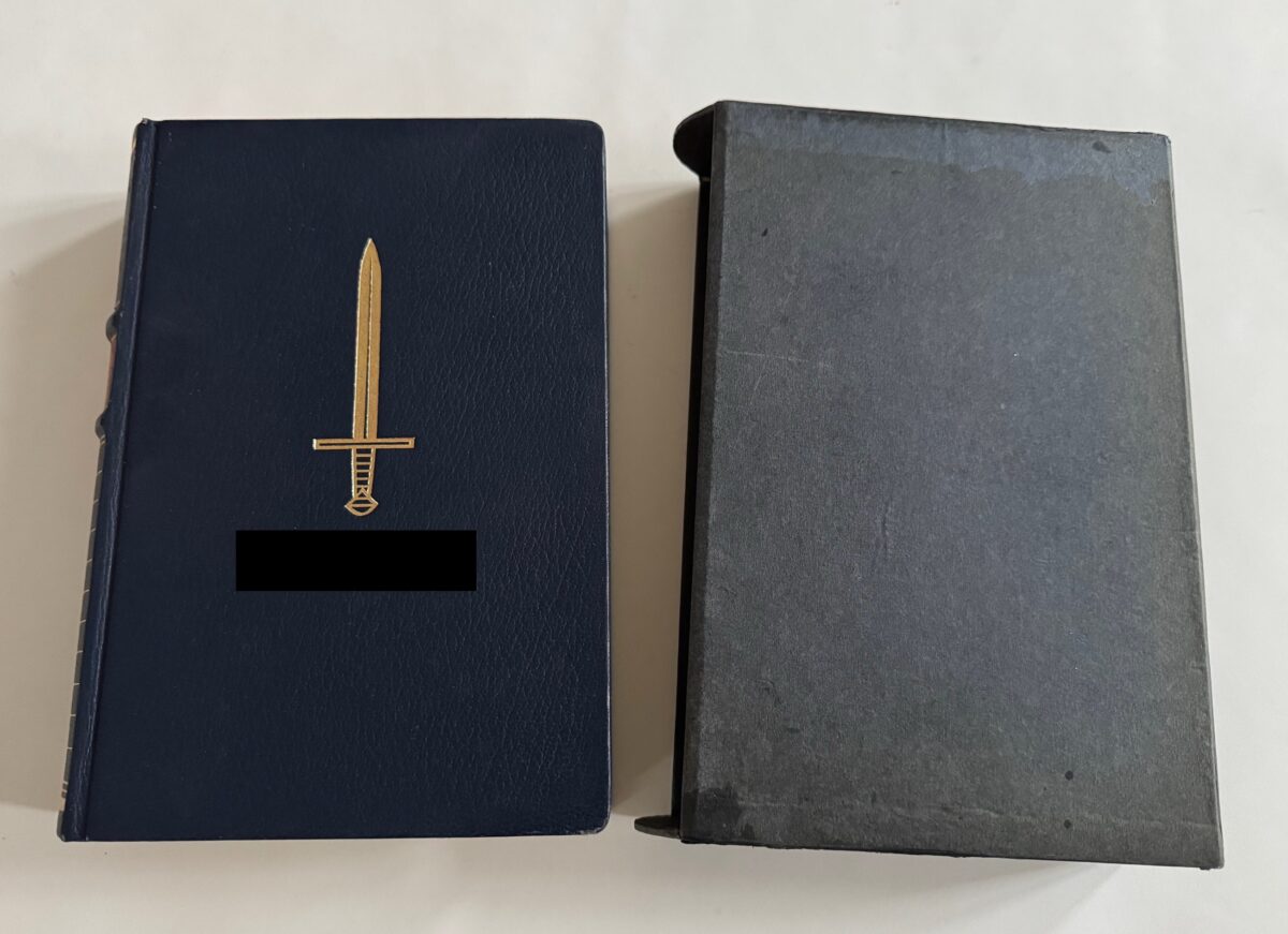 Ganzleder mit Goldschnitt, sehr guter, fast neuwertiger Zustand. Vollständig mit allen 705 Seiten + Anhang, Führerbild und Seidenpapier. Franz Eher Nachf., Zentralverlag der NSDAP, München 1939. Sonderausgabe zum 50. Geburtstag Adolf Hitlers 1939. Mit goldenem Kopfschnitt, goldenen und roten Prägungen auf den Buchrücken. Auf den Deckel mit in Gold eingeprägten Schwert und ebenfalls in Gold „mein Kampf“.