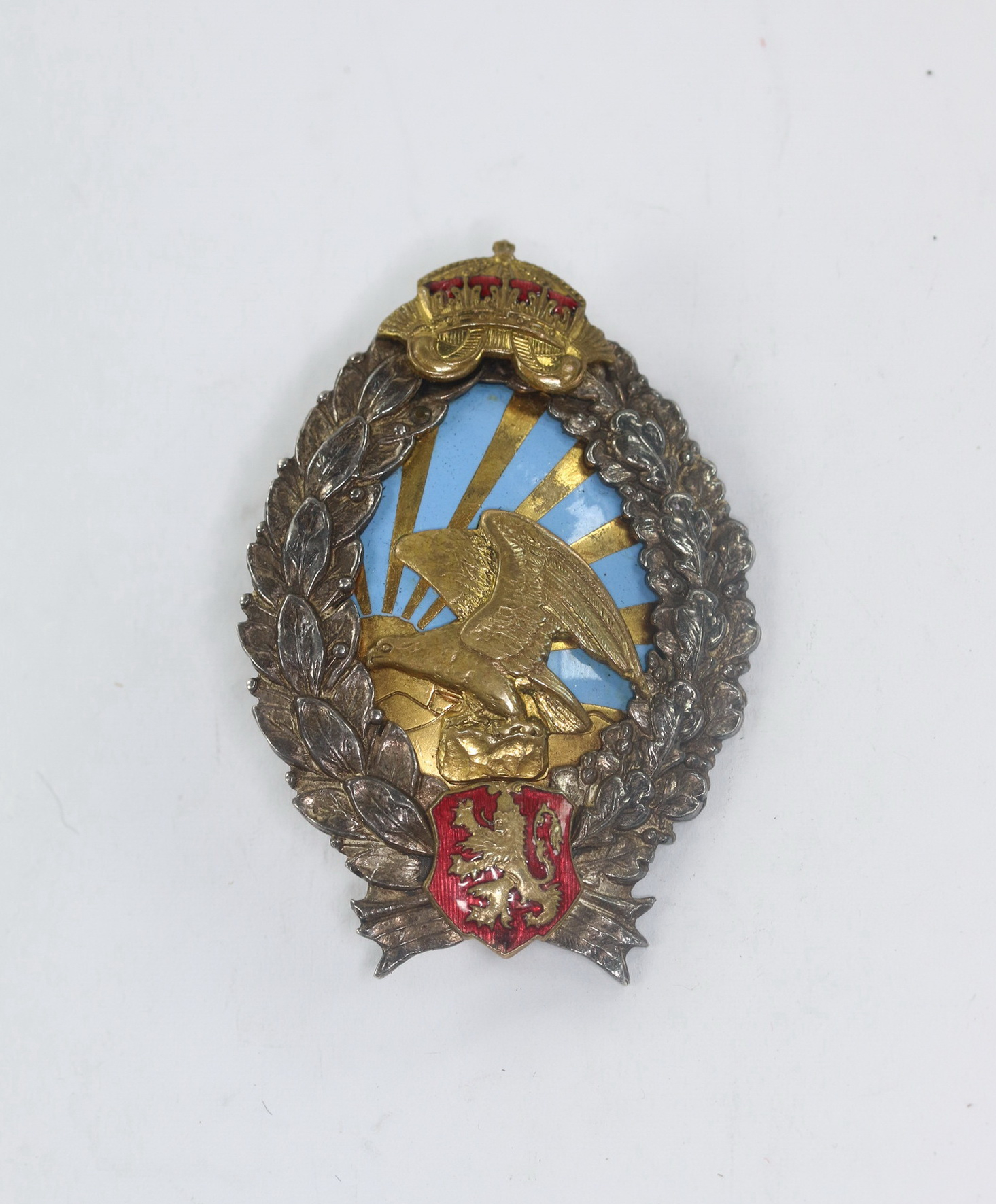 Buntmetall mehrteilig, versilbert und vergoldet, teilweise emailliert. Sehr guter, nur minimal getragener Zustand. mit leichter Patina. Die Emaille ohne Fehler. Rückseitig mit Scheibe und Mutter. Auf der Scheibe der Hersteller. Häufig auch an die verbündeten Deutschen verliehen.