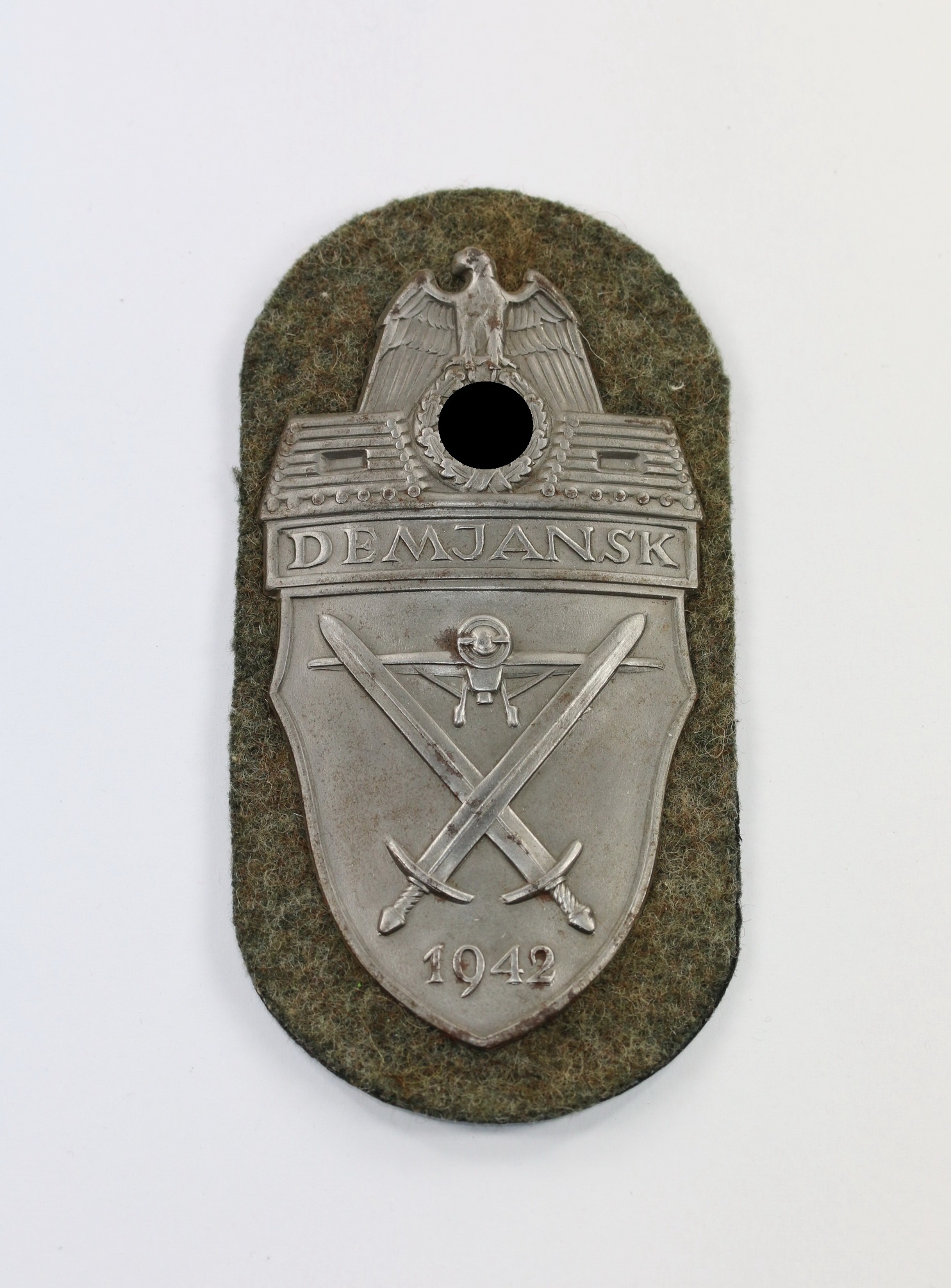Eisen versilbert, sehr guter, ungetragener Zustand. Mit vollständiger Versilberung. Ohne Hersteller, aber eine bekannte Variante, die als „Missing Log“ bekannt ist. Siehe GCA-Datenbank, Typ 4.3. Vollständig mit allen vier Splinten, der Gegenplatte aus Eisenblech und der typischen grauen Ppaierabdeckung mit den vier Löchern.