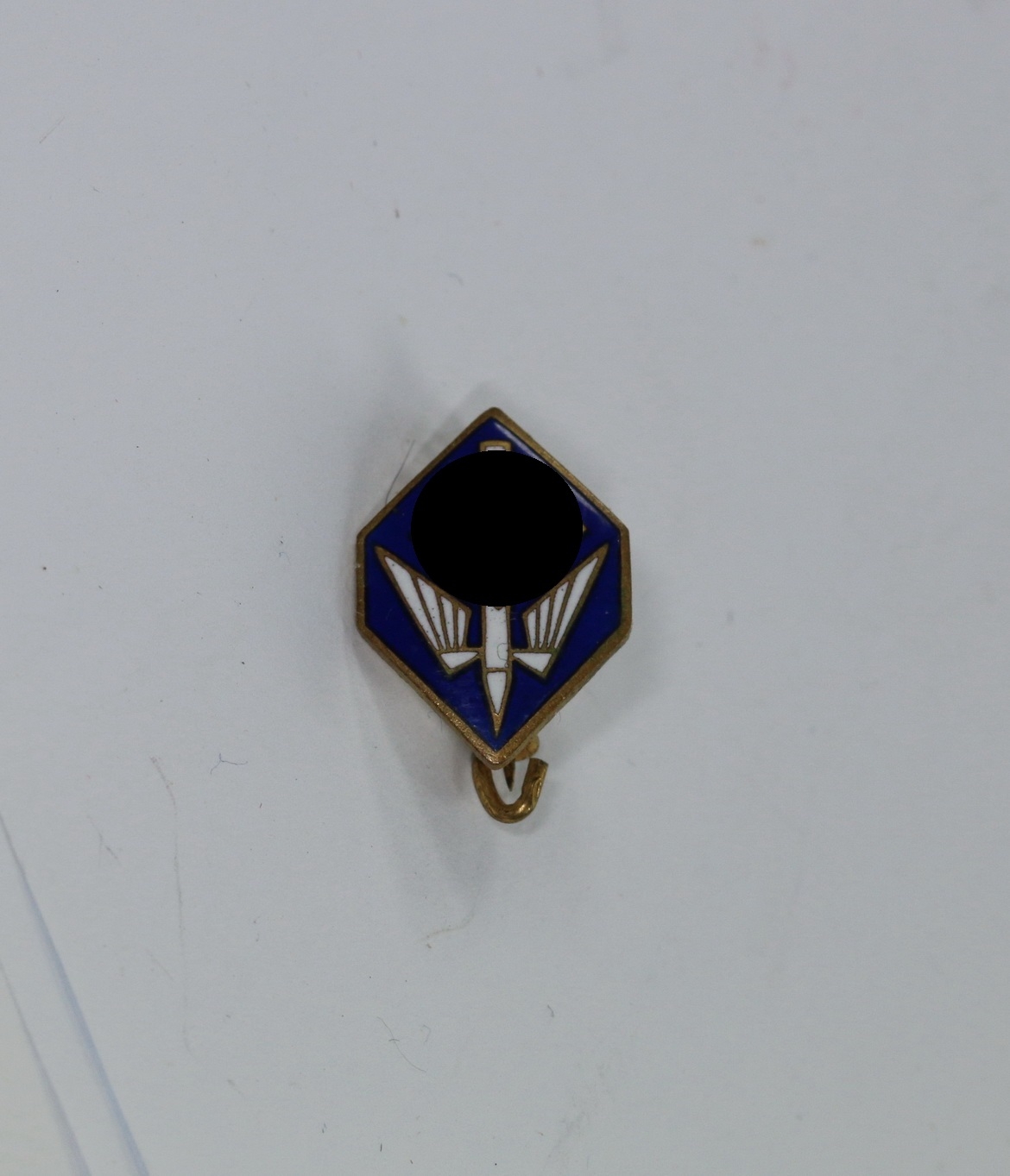 Sehr guter, nur minimal getragener Zustand. Die Emaille ohne Fehler. Rückseitige „Ges. Gesch.“.
