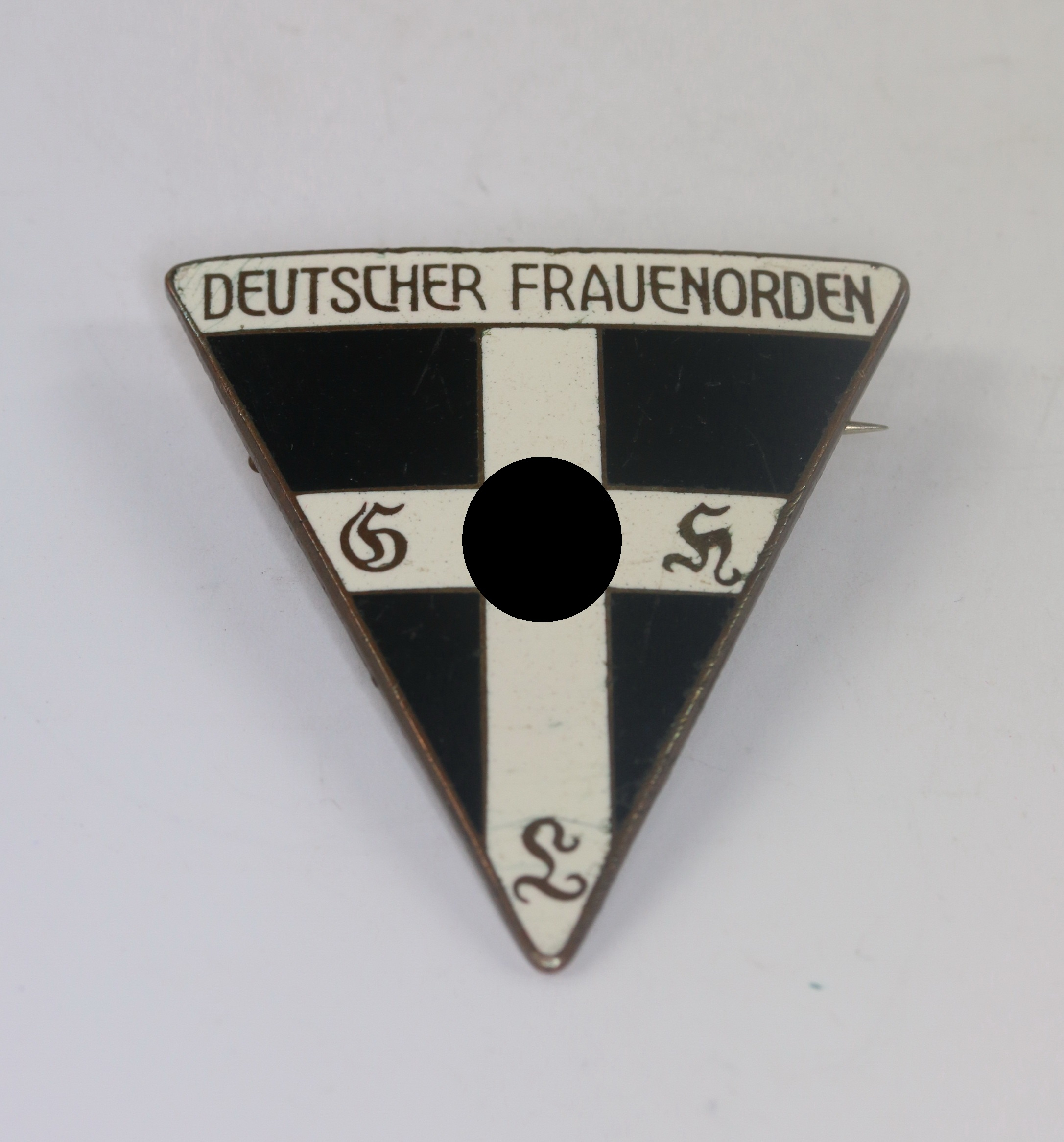 Sehr guter, nur minimal getragener Zustand. Die Emaille ohne Fehler. Rückseitig „Ges. Gesch.“ für Gesetzlich Geschützt. Große Ausführung (44 mm).