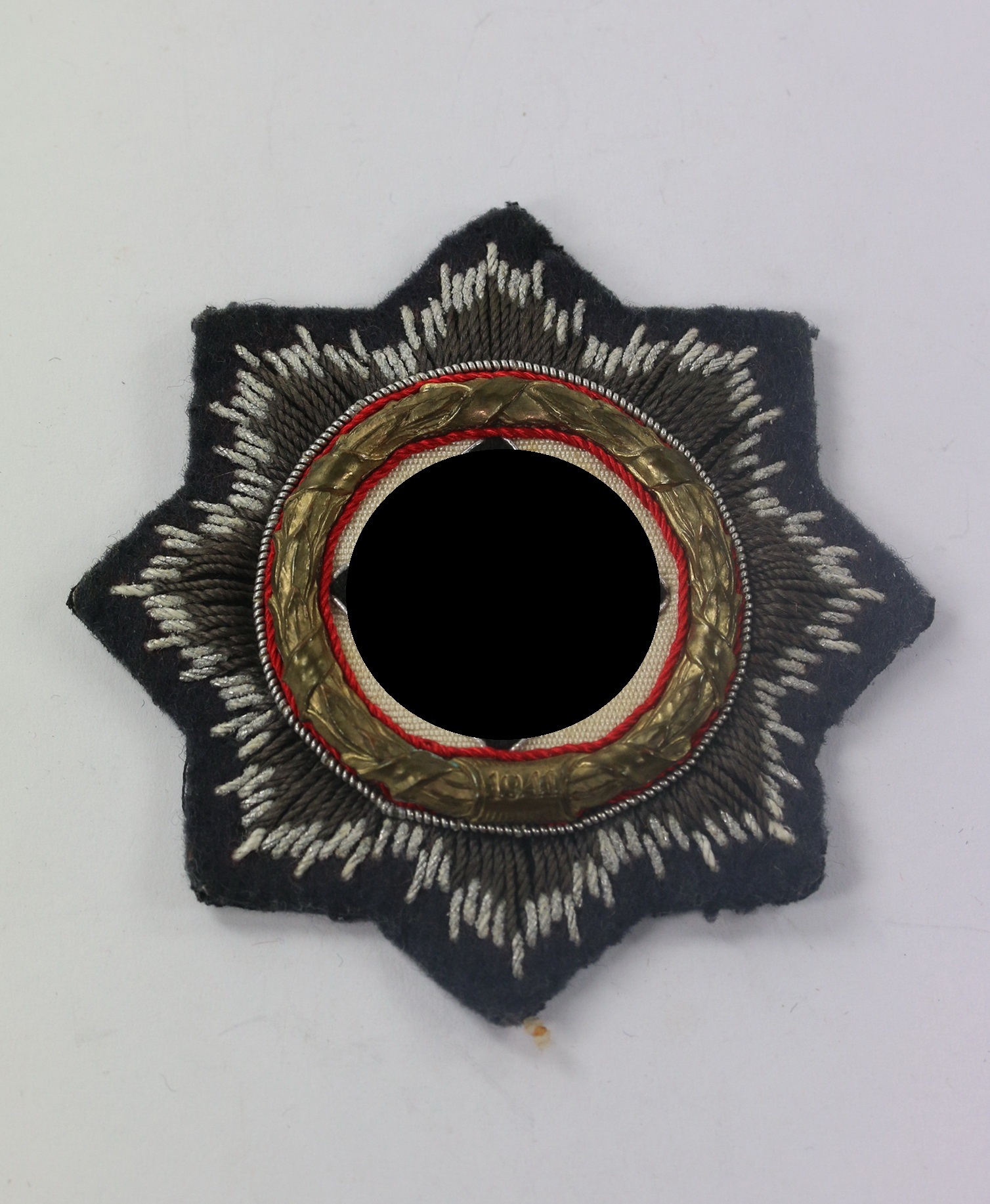 Excellenter, ungetragener Zustand. Metall Kranz auf Luftwaffenstoff. Ohne Hersteller, aber eine bekannte Variante. Mit noch vollständiger schwarzer papier Abdeckung.