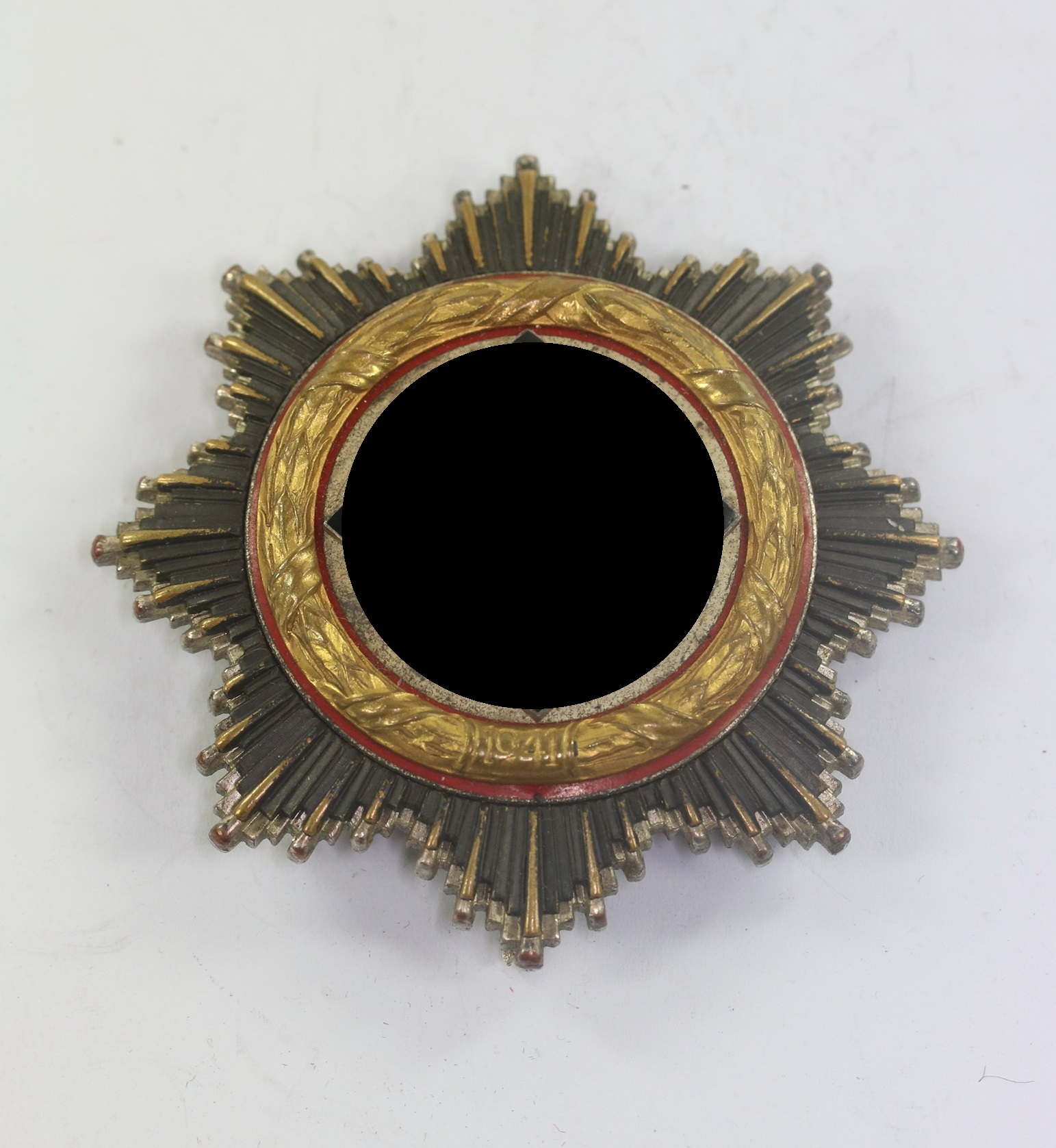 Leichtes Cupal(!) Stück (44,9 g), sehr guter, nur leicht getragener Zustand. Die Emaille ohne Fehler Der Spiegel mit leichten Ansätzen von Patina. Der Lorberkranz mit vollständiger Vergoldung. Die Strahlenscheibe mit noch schöner Schwärzung. Mit Hersteller „20“ für die Firma C.F. Zimmermann, Pforzheim (auf der Nadel Unterseite). Siehe Dietrich März, Das Deutsche Kreuz.