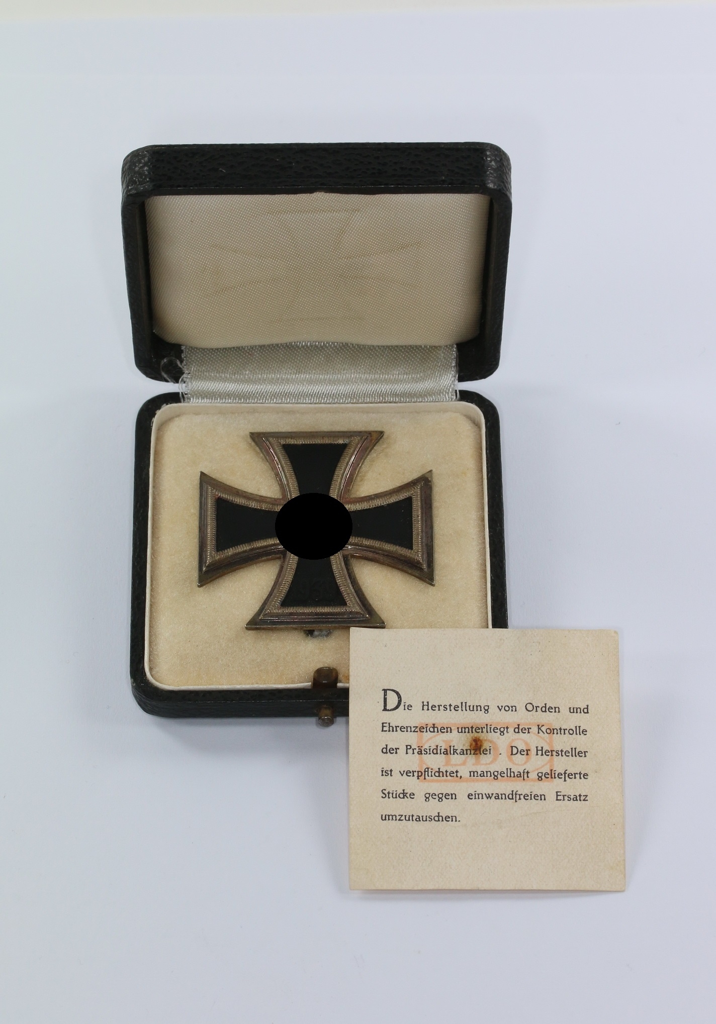Eisernes Kreuz 1. Klasse 1939, Hst. 65, im Etui mit LDO Garantie Zettel