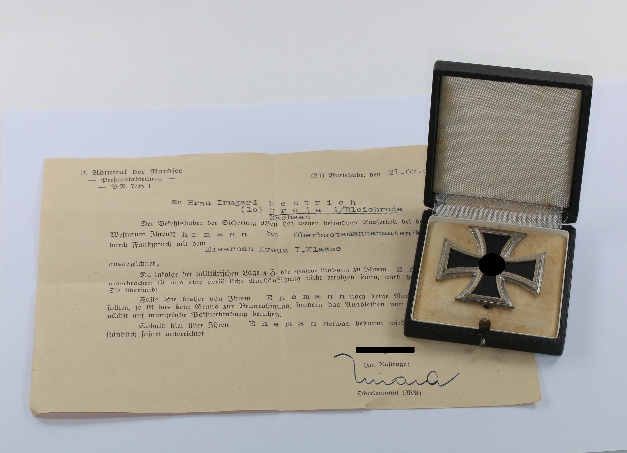 Eisernes Kreuz 1. Klasse 1939, Hst. L/52 und 20 (!), im Etui, mit Überseungsschreiben