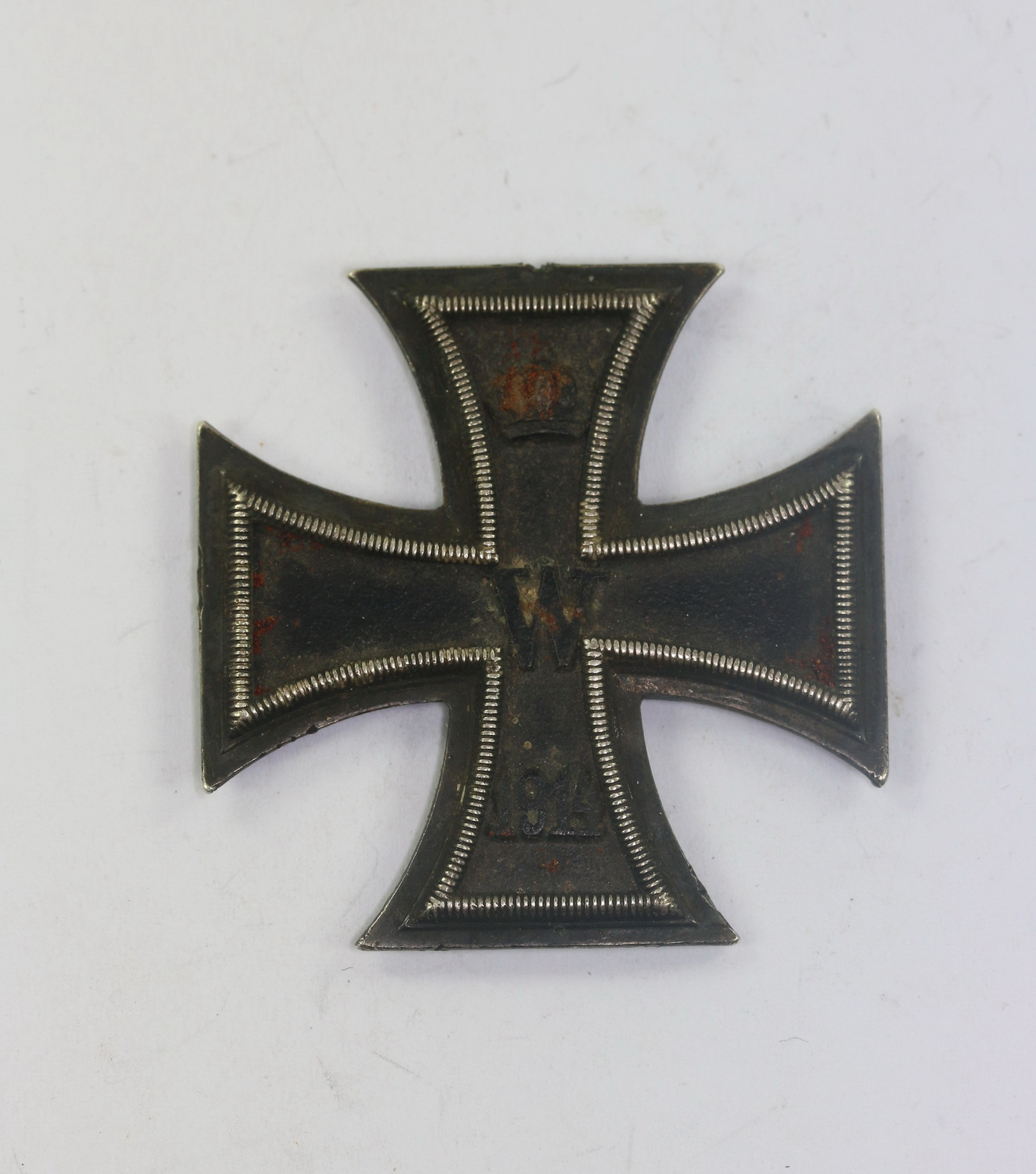 Öse und Bandring fehlen(!), sonst sehr guter, leicht getragener Zustand. Der Kern mit vollständiger Schwärzung, der Rahmen mit Patna. Magnetisch.