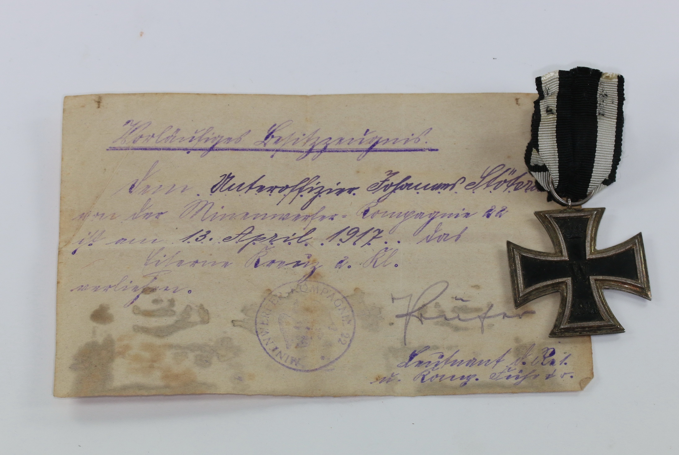 Eisernes Kreuz 2. Klasse 1914, Hst. IVI, mit vorläufigen Besitzzeugnis