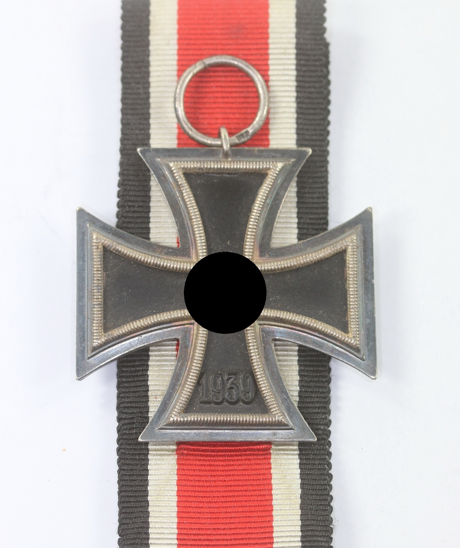 Sehr guter, ungetragener Zustand. Der Kern mit vollständiger Schwärzung. Die Zargen frostig, die Kanten poliert, mit leichter Patina. Mit Hersteller „76“ für die Firma Ernst L. Müller, Pforzheim. Magnetisch. Mit ungetragenen Band in voller Verleihungslänge.