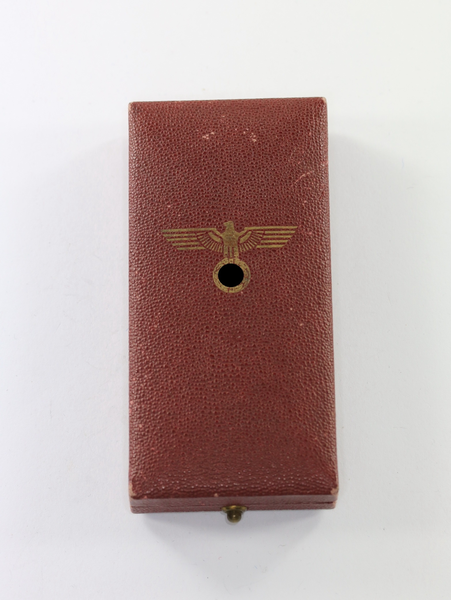Sehr guter, nur leicht gebrauchter Zustand. Auf den Deckel mit goldenen Hoheitsadler mit Hakenkreuz.