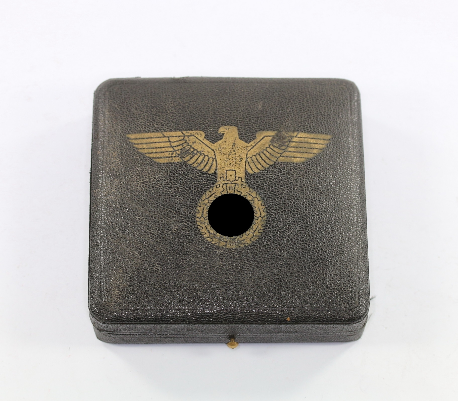 Sehr guter, leicht gebrauchter Zustand. Auf den Deckel mit großen Hoheitsadler mit Hakenkreuz. Für unbekannte Medaille, etc..
