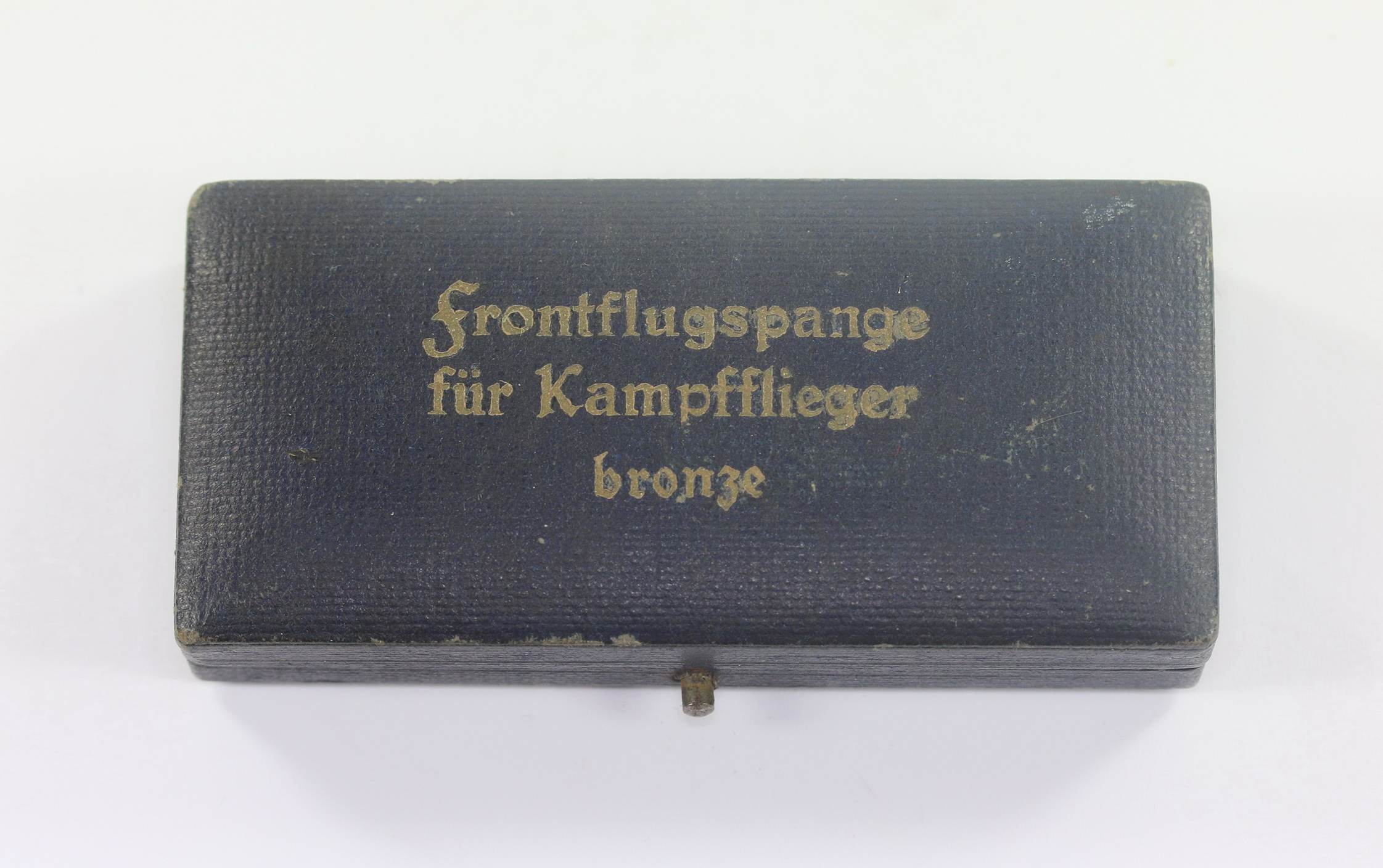 Sehr guter, nur leicht gebrauchter Zustand. Auf den Deckel in Gold eingeprägt „Frontflugspange für Kampfflieger bronze“. Frühes Etui passend für alle Buntmetall Spangen.