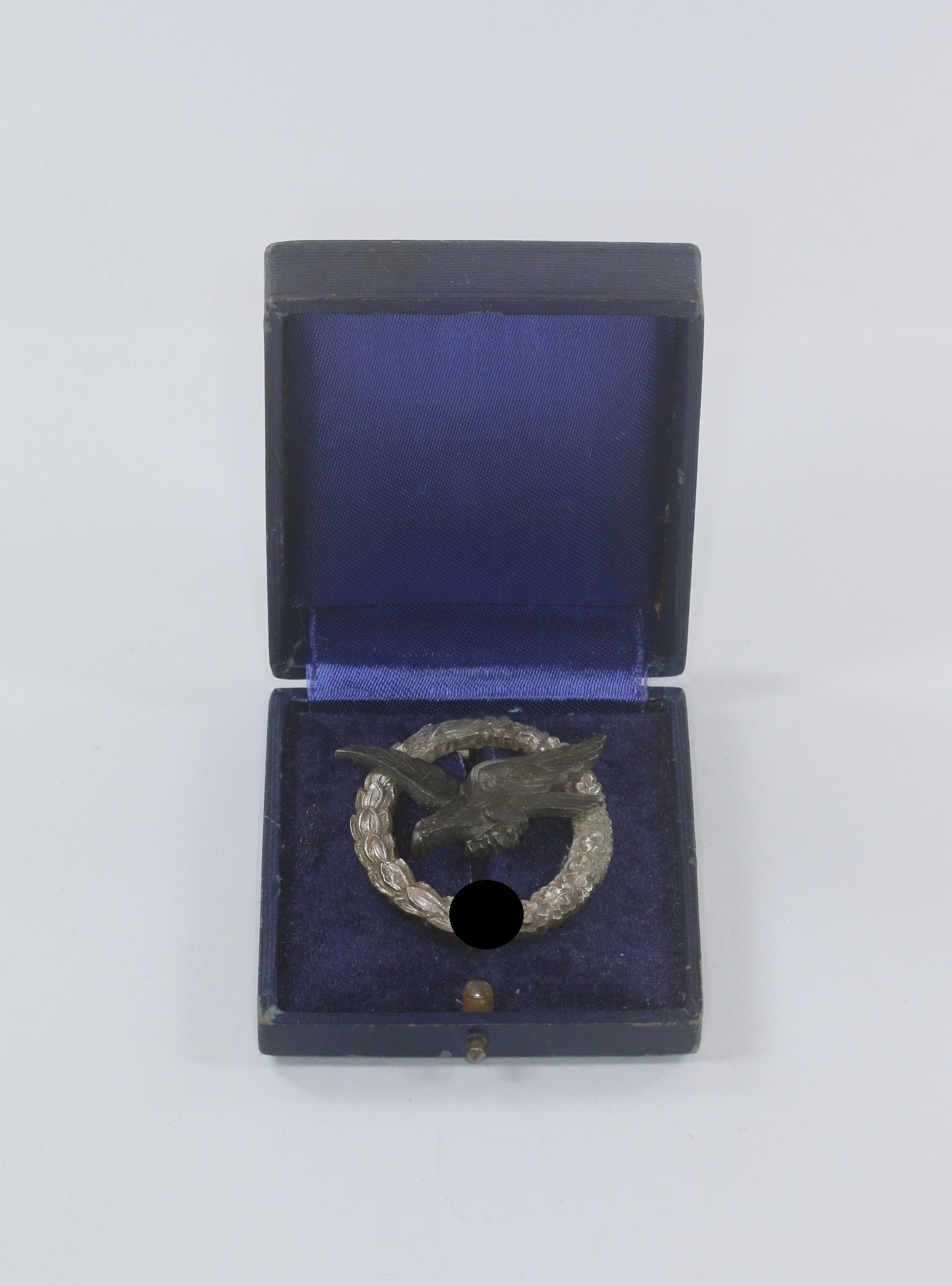 Im zugehörigen Etui. Das Etui in einen sehr guten, etwa sgebrauchten Zustad. Auf den Deckel in Gold eingeprägt „Luftwaffen Fliegerschützen Abzeichen“.