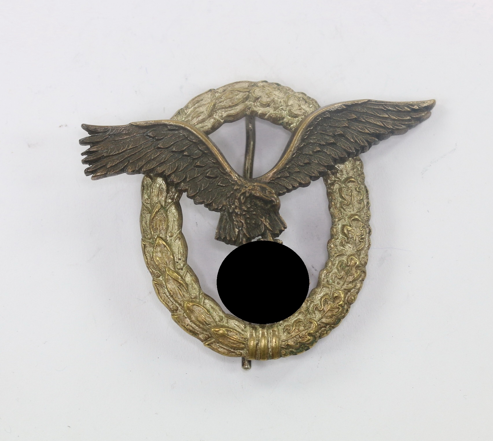 Buntmetall, sehr guter, nur minimal getragener Zustand. Der Kranz mit vollständiger Versilberung, der Adler mit vollständiger Tönung. Mit leichter Patina. Mit Hersteller „C.E. Juncker BerlinSW“. Das Abzeichen das 2. Modell der Firma Juncker (J.2), in der seltenen, flachen(!) Ausführung.