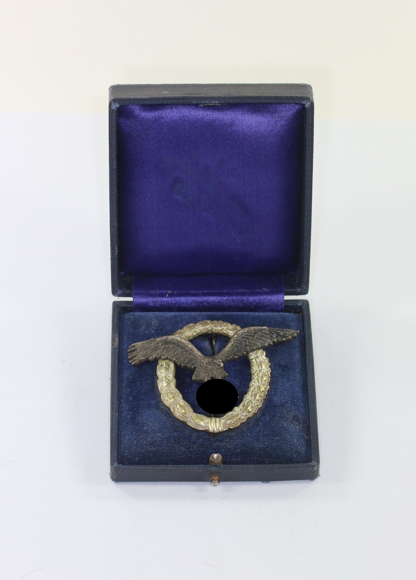 Im zugehörigen, frühen Etui. Sehr guter, nur minimal gebrauchter Zustand. Auf den Deckel in Gold „Flugzeugführer Abzeichen“. Innen mit Holz Inlet und Samt und Seide.