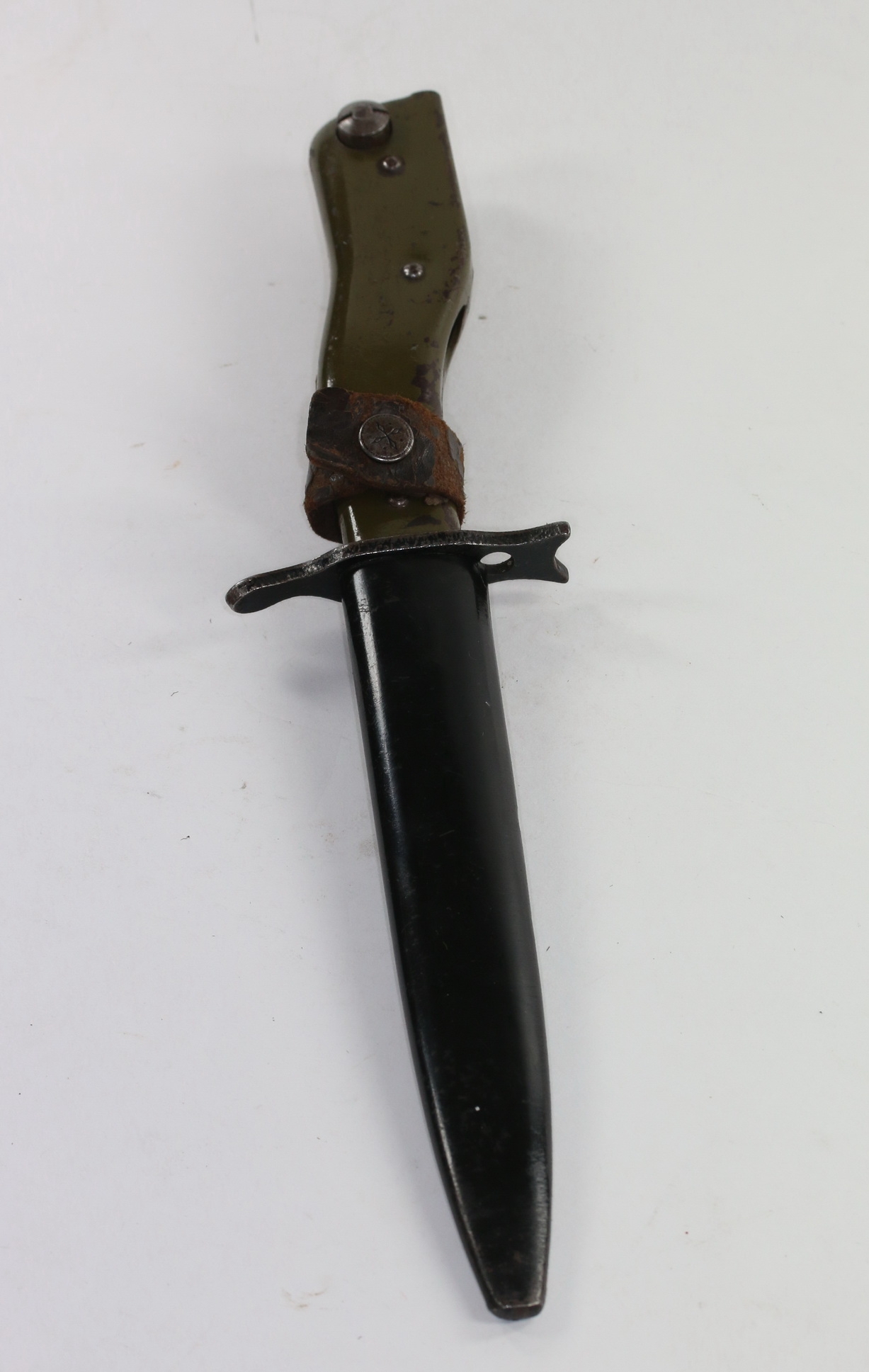 Gesamtlänge mit Scheide: ca. 28,5 cm, Klingenlänge: ca. 15,5 cm, Klingenbreite: ca. 2,2 cm.