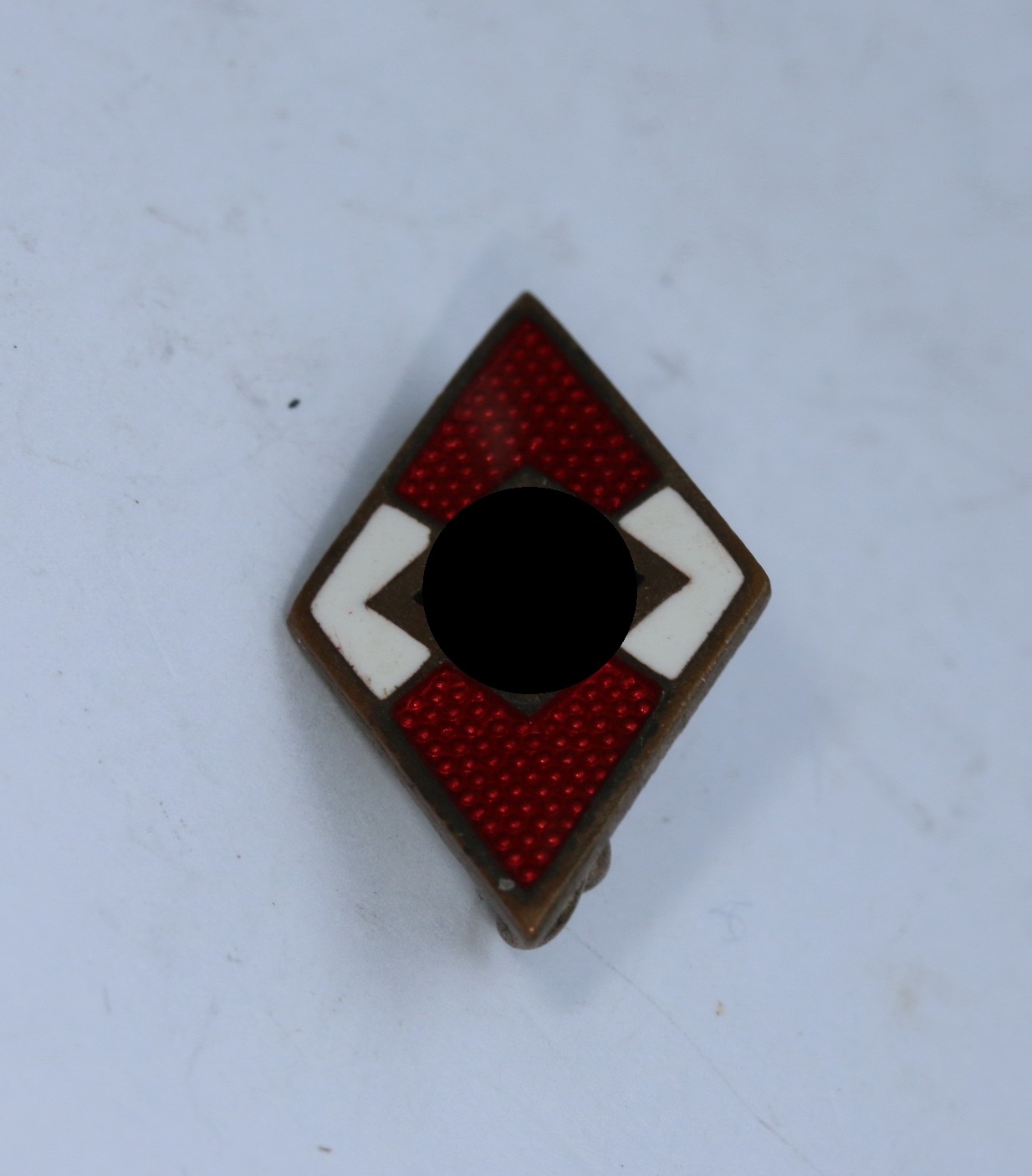 Sehr guter, nur minimal getragener Zustand. Die Emaille ohne Fehler. Mit Patina. Mit Hersteller „RZM M1/27“ für die Firma .Ernst L. Müller, Pforzheim.