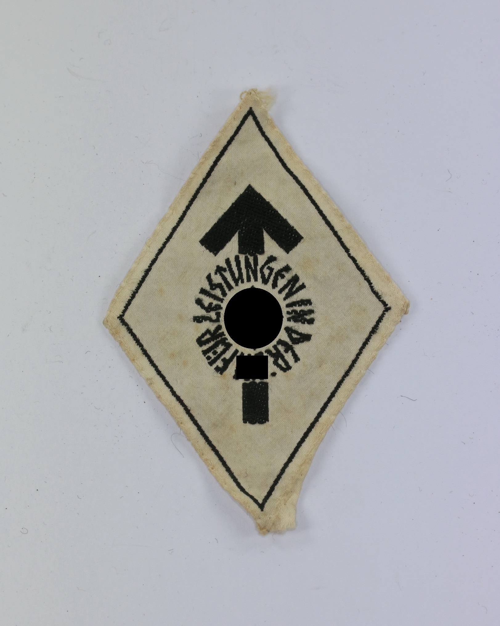 Gewebte Ausführung auf weißen Tuch. Sehr guter, nur minimal getragener Zustand. Selten!