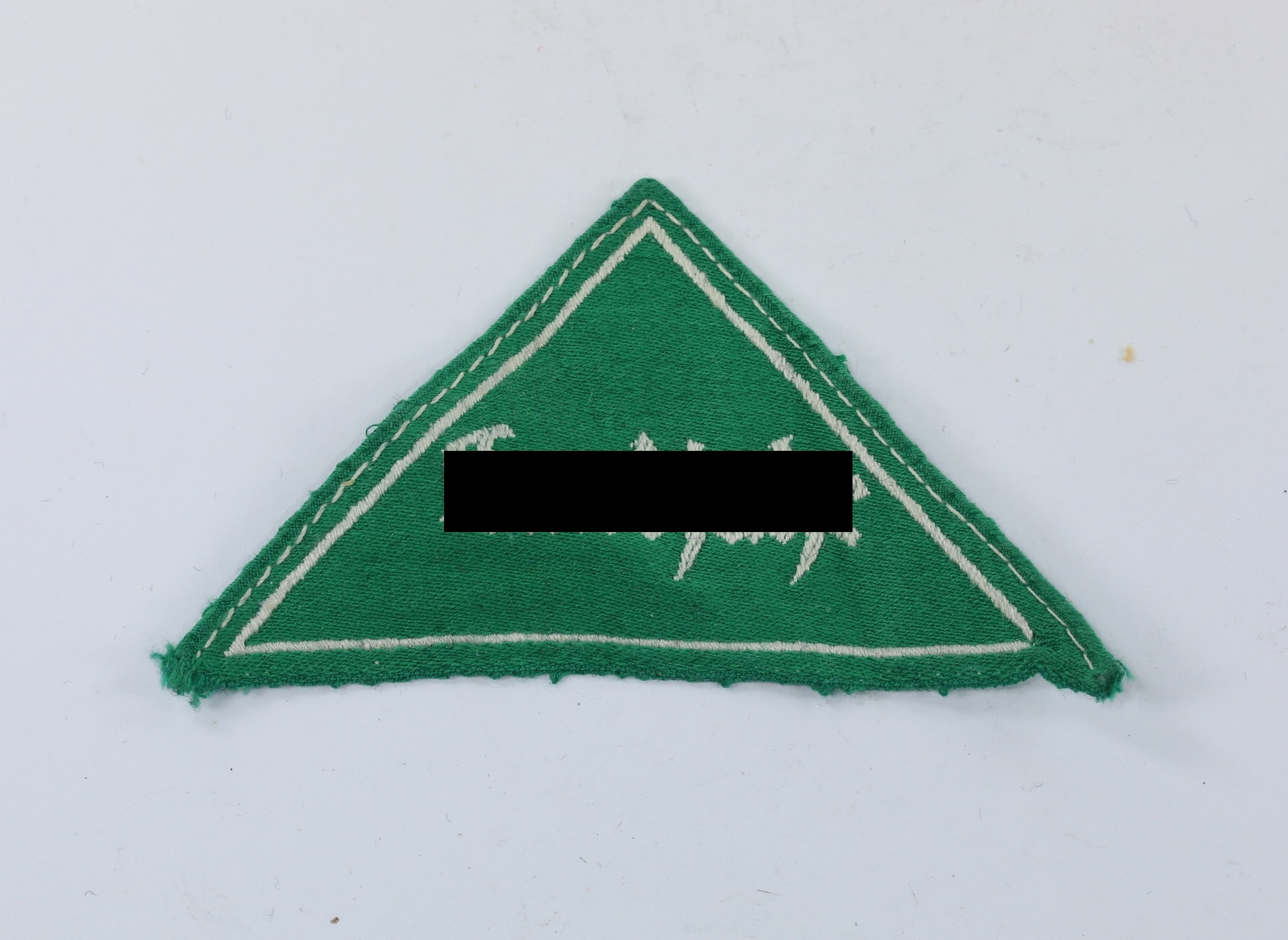 Weiß gewebt auf grünem Grund, sehr guter, ungetragener Zustand.