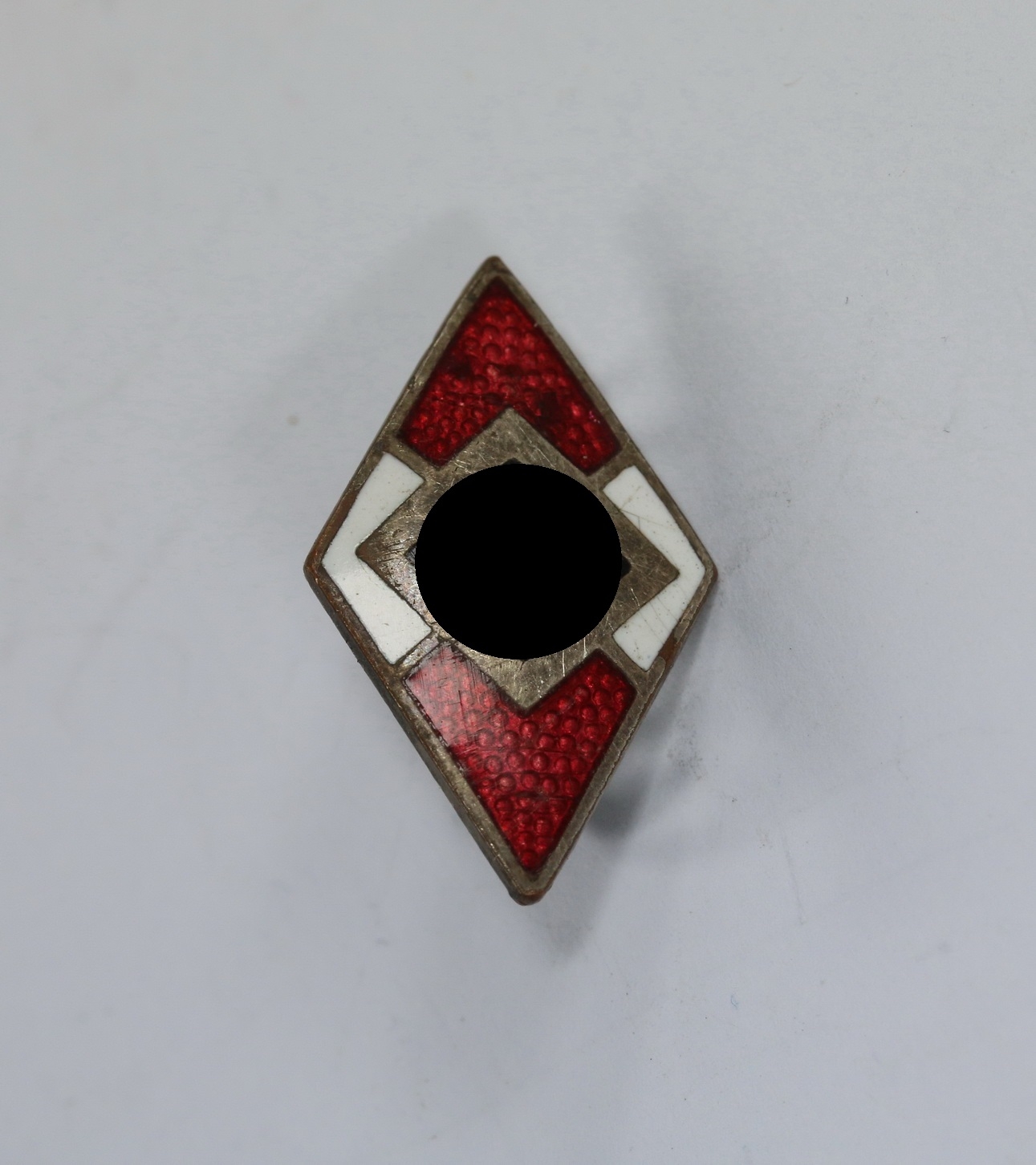 Sehr guter, nur minimal getragener Zustand. Die Emaille ohne Fehler. Mit Patina. Mit Hersteller „RZM M1/6.“, für die Firma Karl Hensler, Pforzheim.