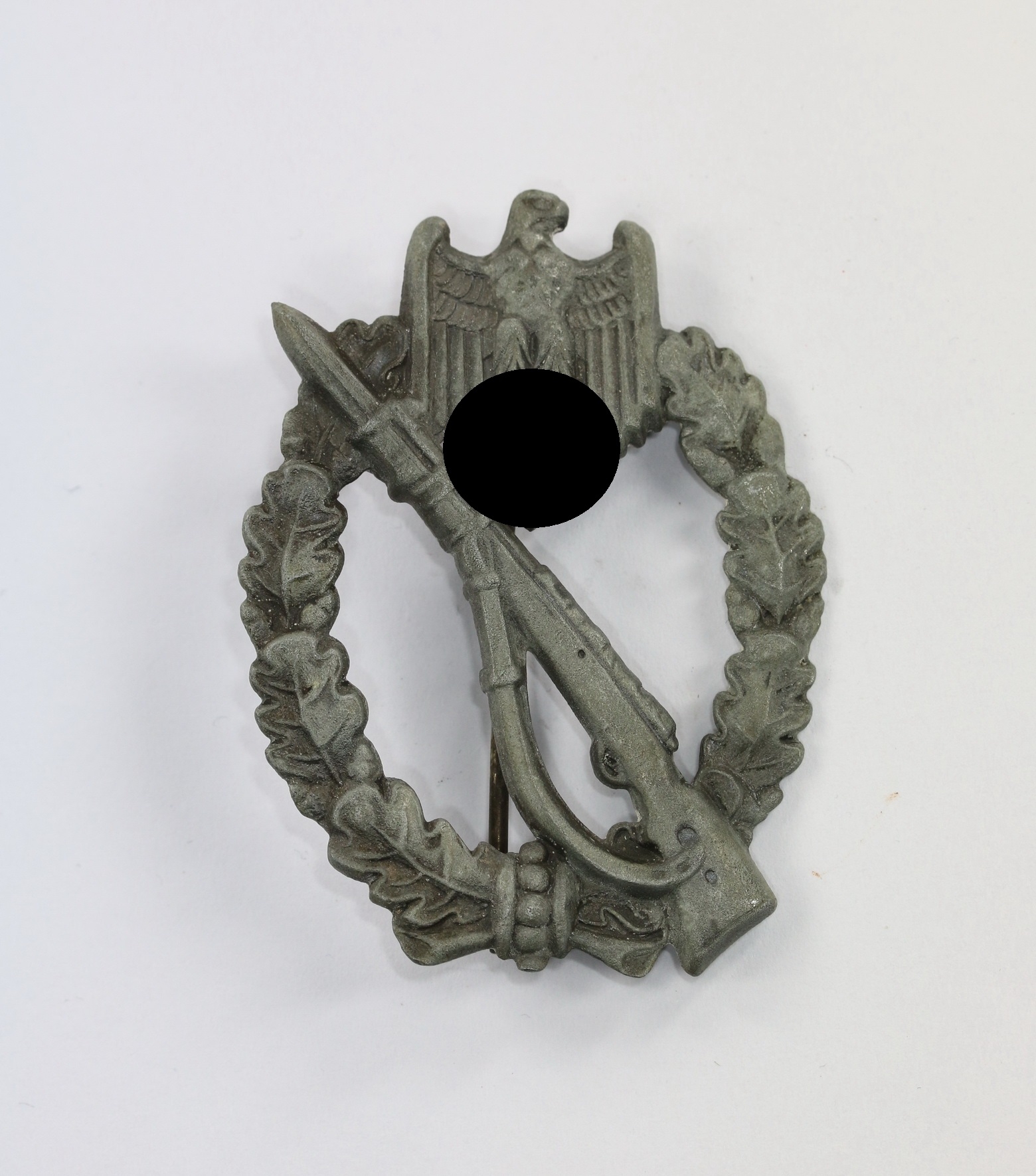 Zink, sehr guter, leicht getragener Zustand. Ohne Hersteller, aber eine bekannte Variante der Firma E.F. Wiedmann, Frankfurt a.M. (ÜÜ). Siehe GCA-Datenbank.