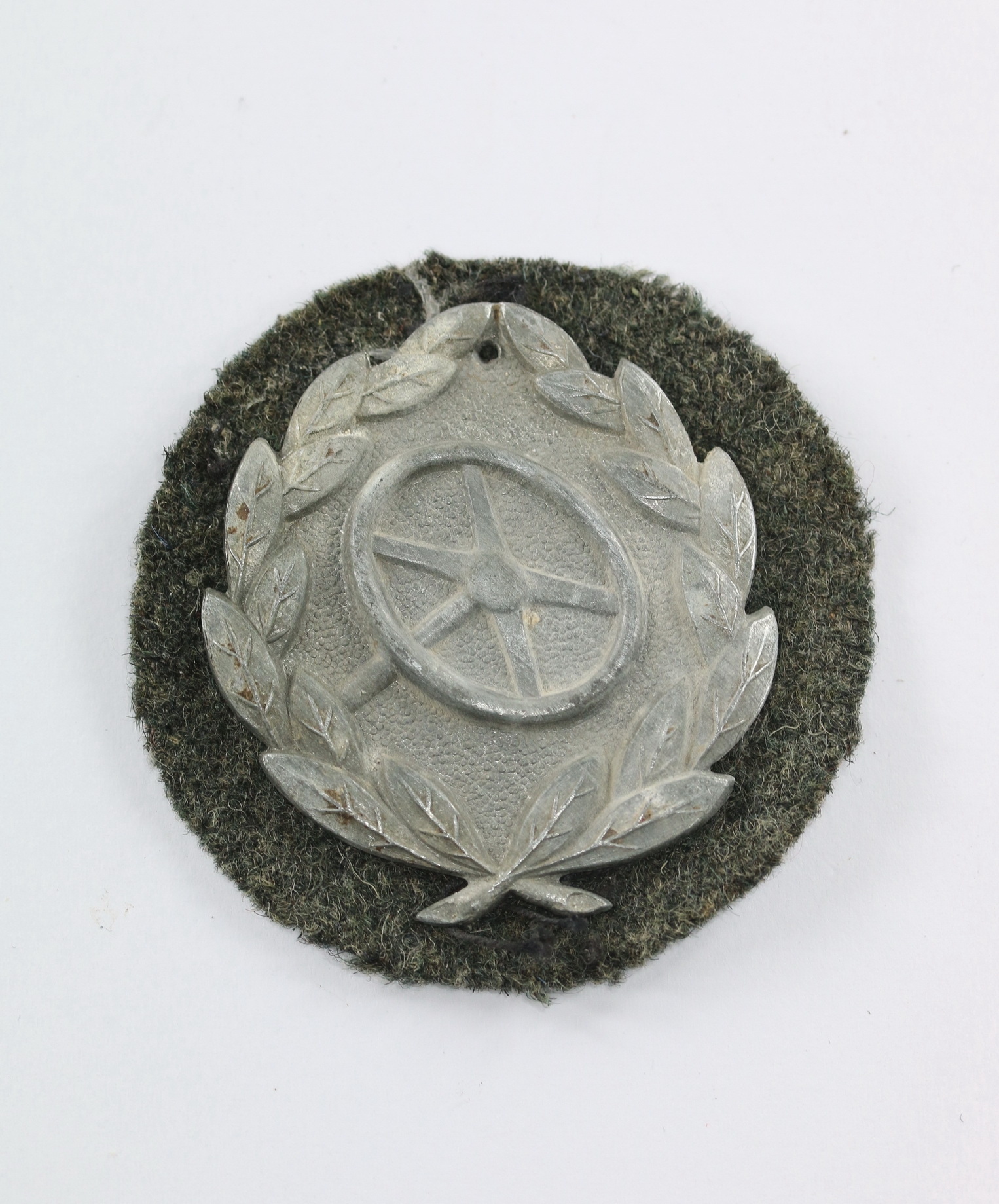 Zink, sehr guter, leicht getragener Zustand. Vollständig mit beiden Splinten, auf Heeresstoff.