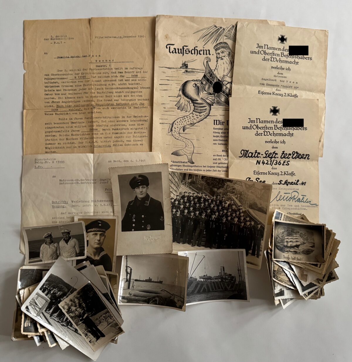 Nachlass des Matrosen Gefreiten Engelbert ter Veez. ter Veez fuhr auf den Hilfskreuzer Thoer, Tarnbezeichnung Schiff 10. Der Nachlass bestht aus: