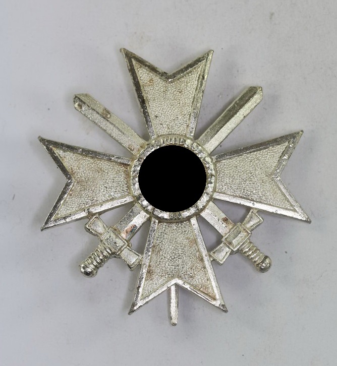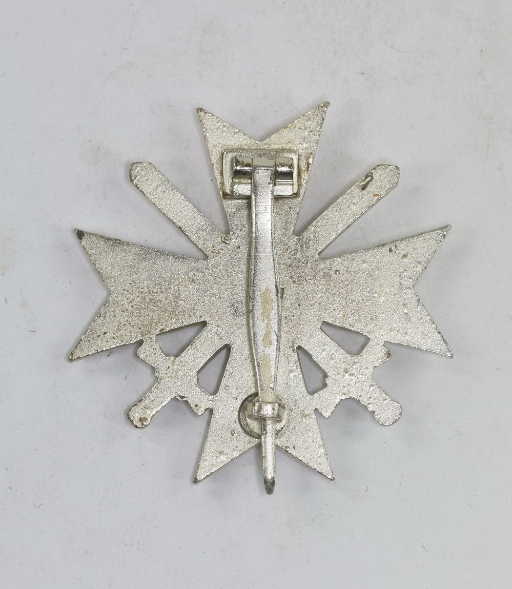 Das Kriegsverdienstkreuz aus versilberten Zink. Sehr guter, nahezu ungetragener Zustand. Mit vollständiger, typischer Versilberung. Rückseitig, zentral die codierte Hersteller Markierung „3“ für die Firma Wilhelm Deumer aus Lüdenscheid.