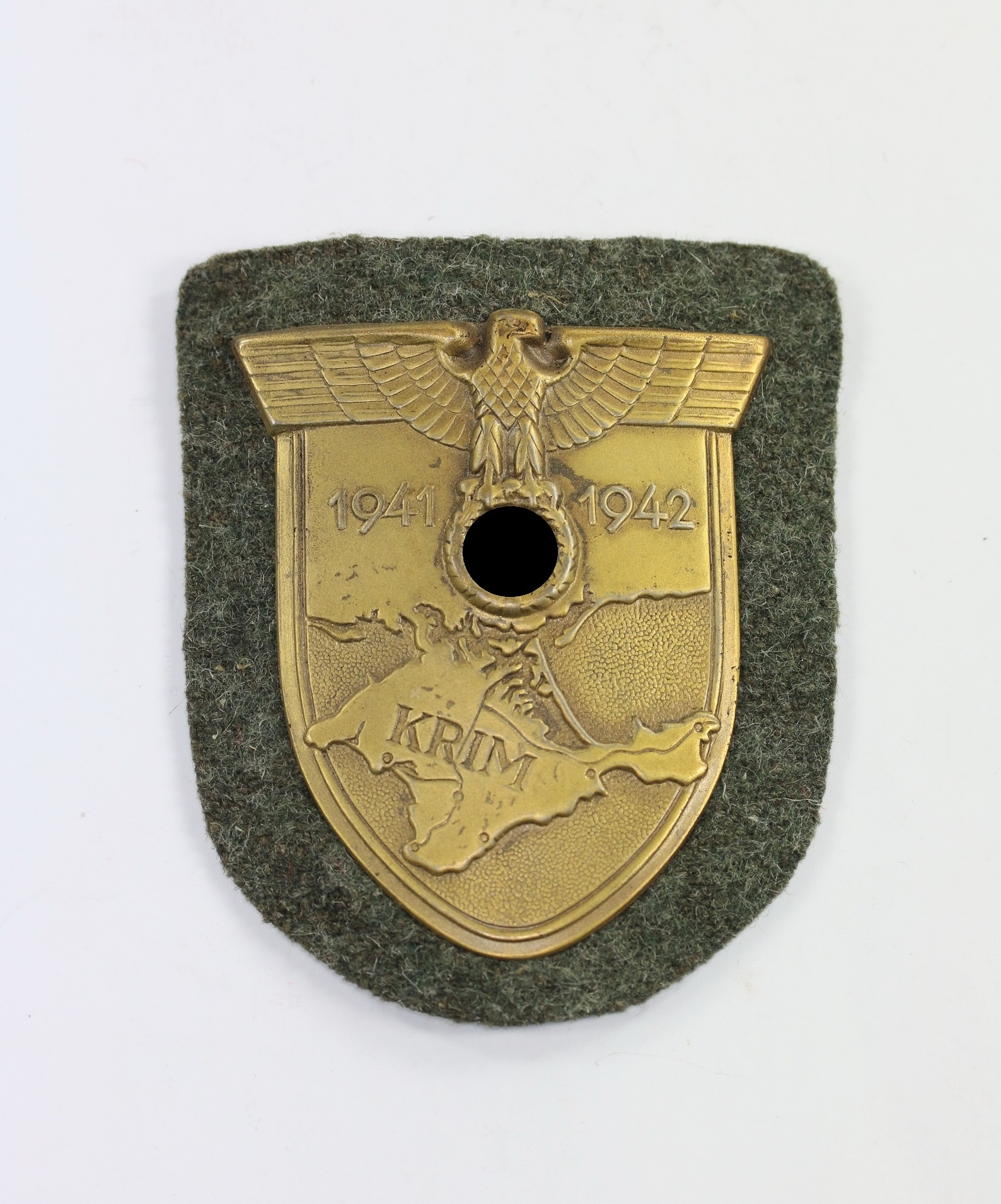 Eisen, excellenter, ungetragener Zustand. Mit vollständiger Bronzierung. Ohne Hersteller, aber eine bekannte Variante. Siehe GCA-Datenbank, Typ 3.12. Vollständig mit allen vier Splinten, der Gegenplatte und der typischen schwarzen Papier Abdeckung.