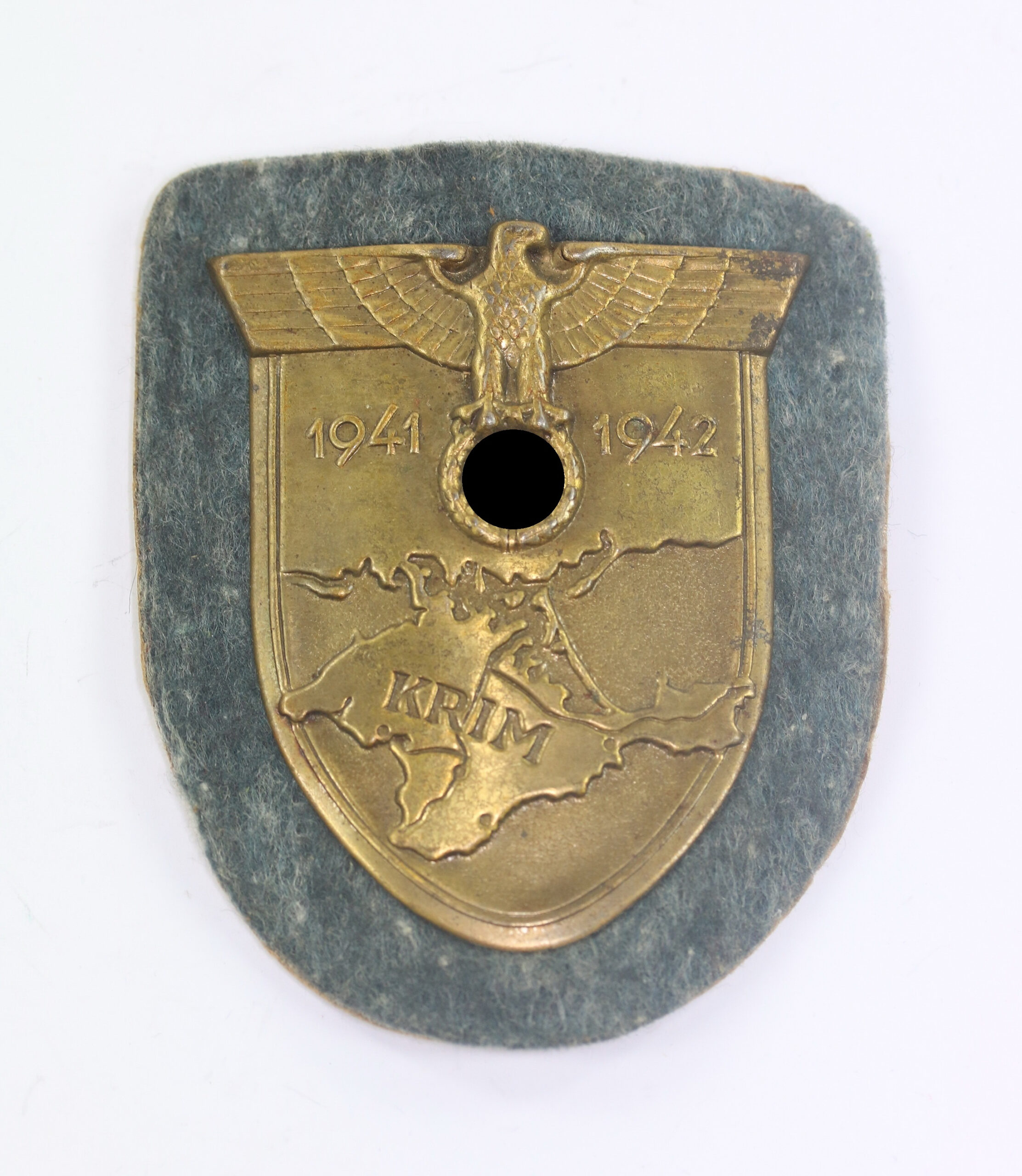 Eisen, sehr guter, ungetragener Zustand. Mit vollständiger Bronzierung. Ohne Hersteller, aber eine bekannte Variante. Siehe GCA-Datenbank, Typ 3.9. Mit allen vier Splinten, der Gegenplatte und der vollständigen Papierabdeckung.