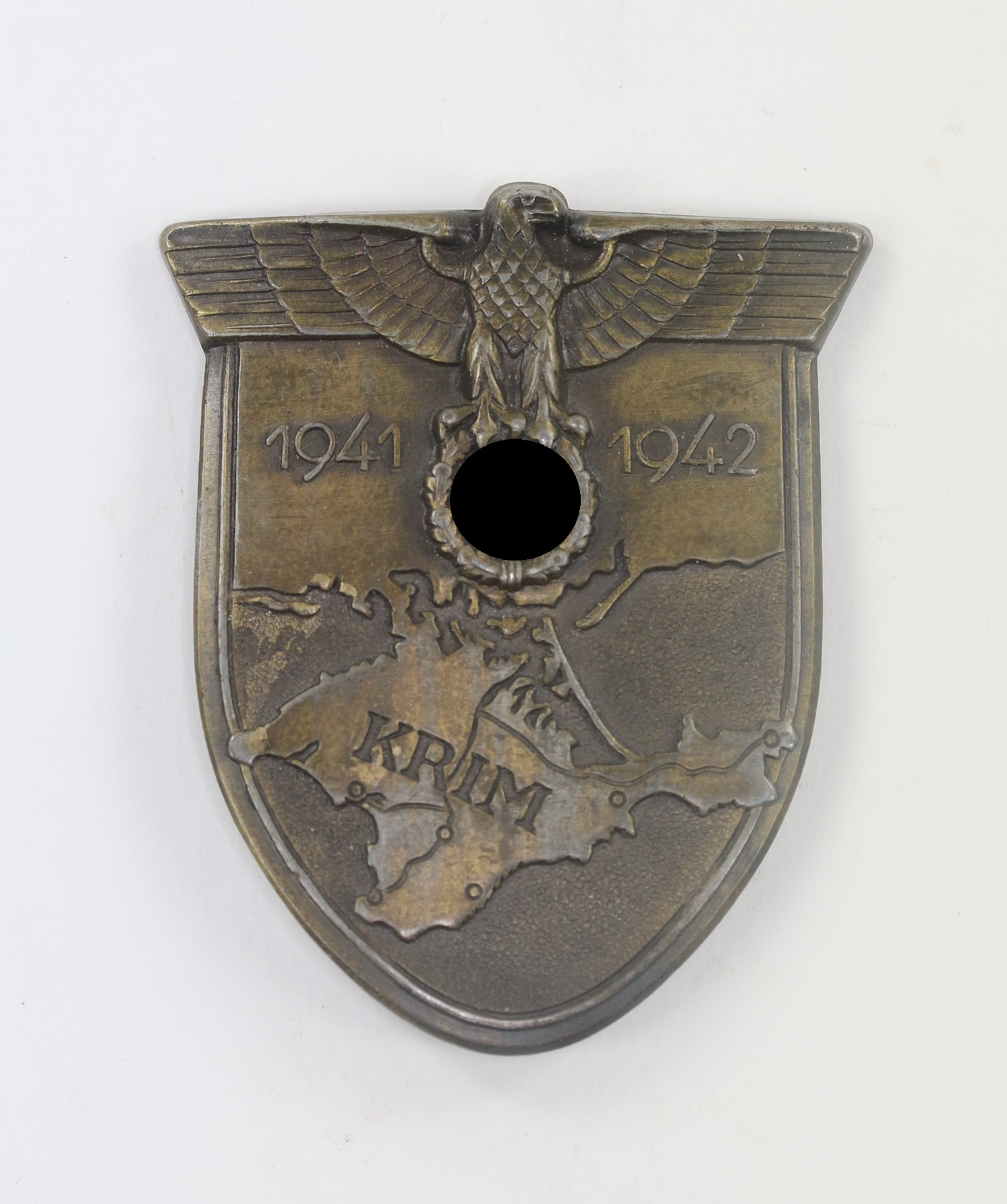 Eisen bronziert, sehr guter, nahezu ungetragener Zustand. Die Splinte, vollständig und einwandfrei. Ohne Hersteller, aber eine bekannte Variante. Siehe GCA-Datenbank, Typ 3.7.